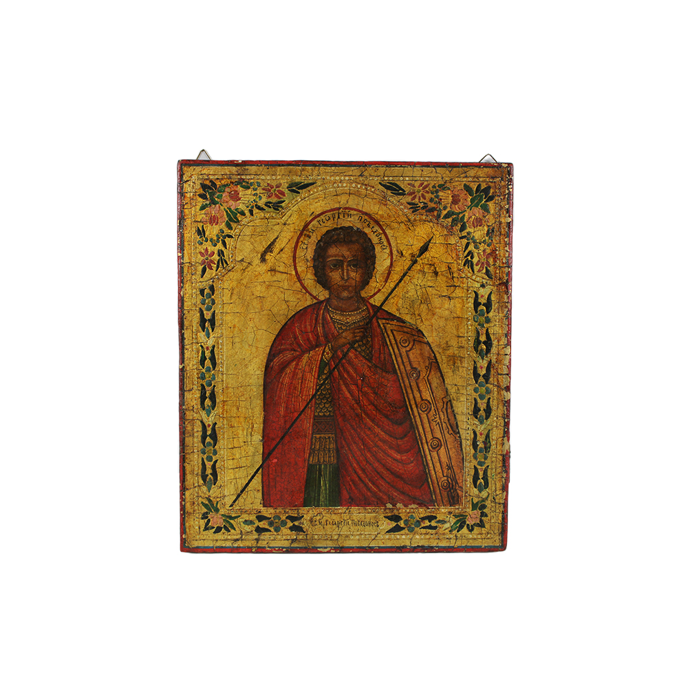 ICONA RUSSA a fondo oro raffigurante San Pantaleone XIX secolo h cm 31 x 26