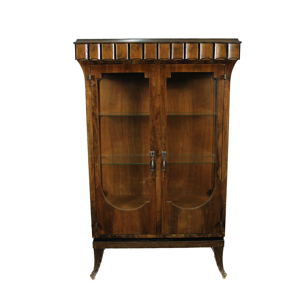 BELLA VETRINA DECO' in legno di noce e legno ebanizzato di forma a pagoda Sicilia primi 900 h cm 167 x 106 x 43