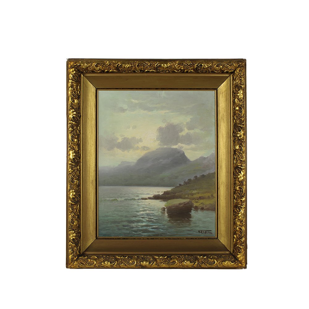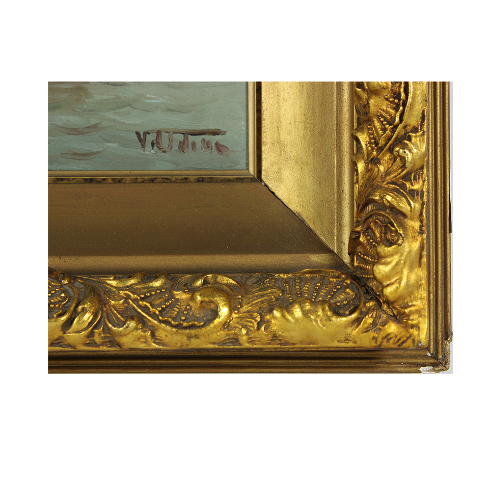 V. UDINE olio su faesite raffigurante marina dentro cornice in legno intagliato e dorato firma in basso a dx h cm 53 x 45 - cornice h cm 73 x 63