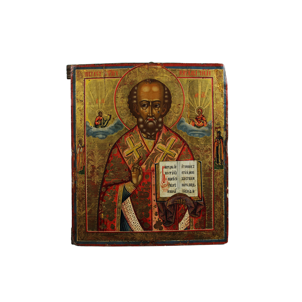 ICONA su legno a fondo oro raffigurante San Nicola Russia XIX secolo h cm 36 x 31