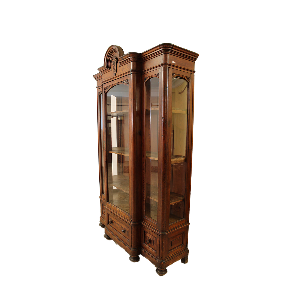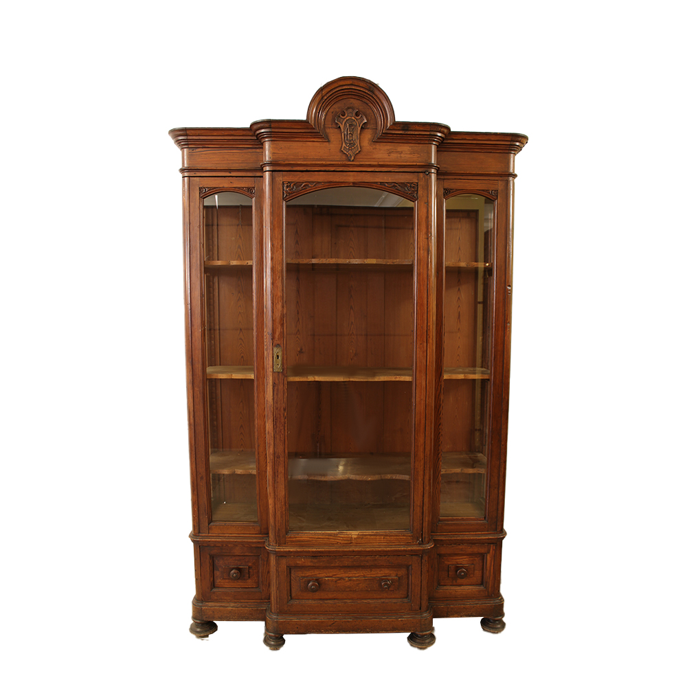 VETRINA in pino pece con anta centrale e 3 cassetti nella parte inferiore, stemma nobiliare con monogramma CR Sicilia XIX secolo h cm 237 x 143 x 50