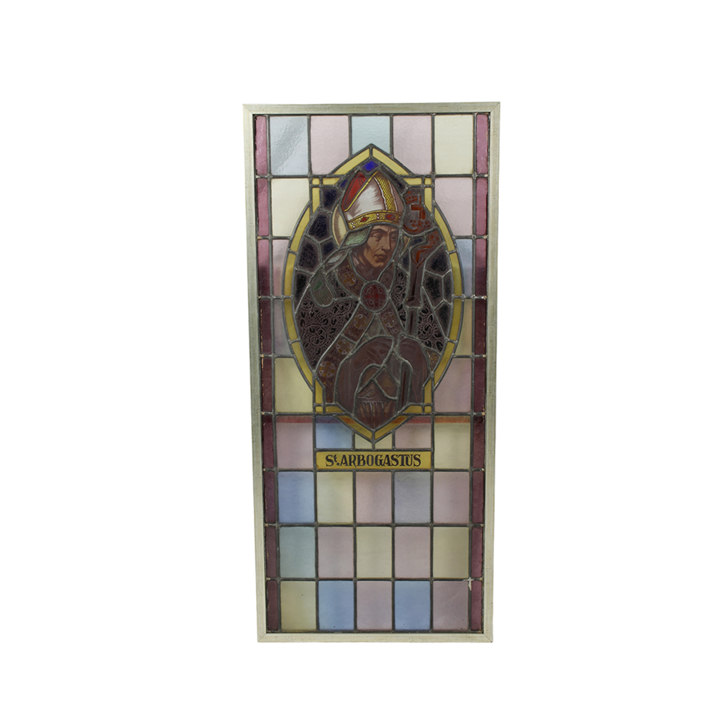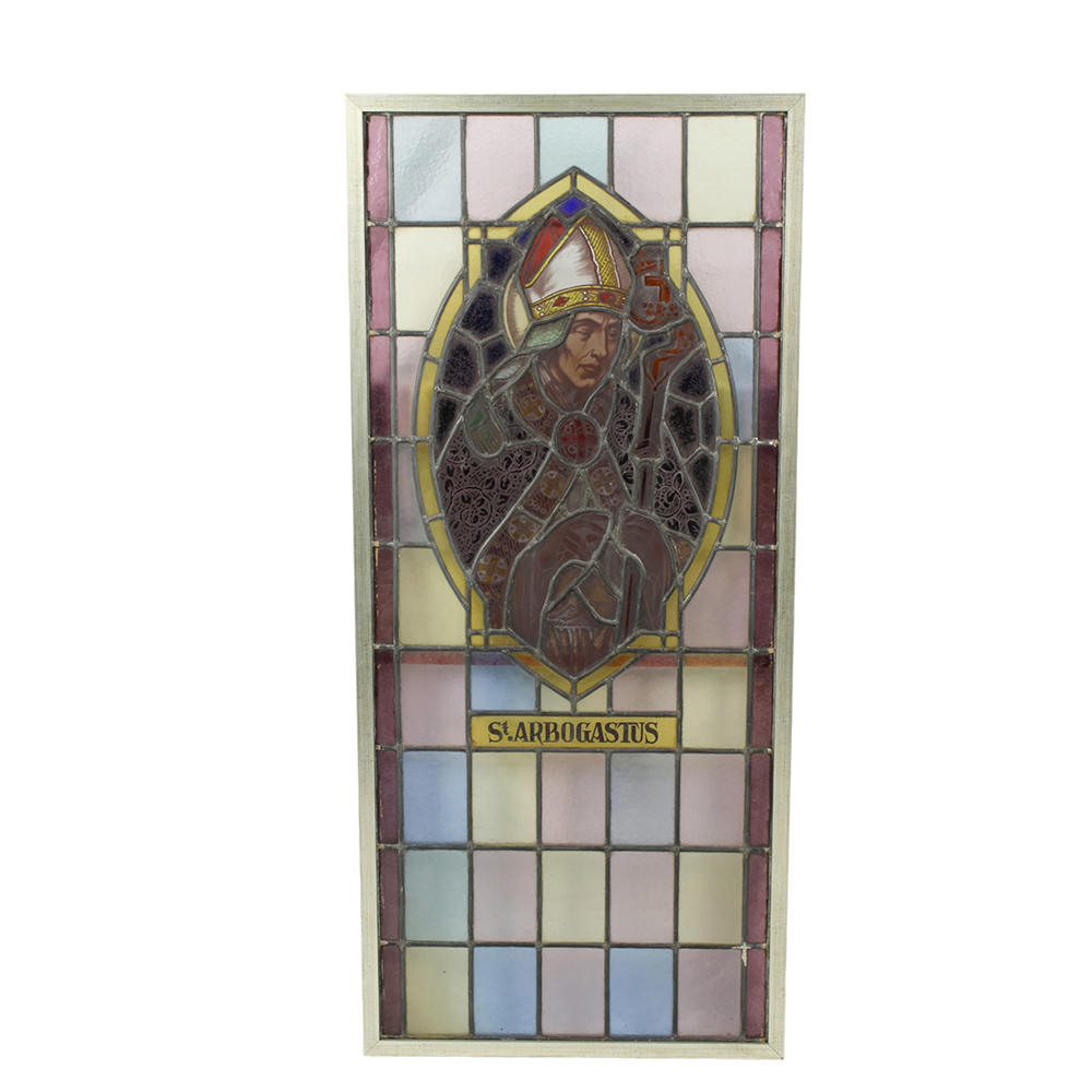 VETRATA raffigurante sant arbogastus Francia XIX secolo h cm 114 x 51