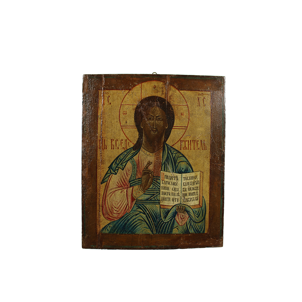 ICONA raffigurante Cristo Pantocratore in maestosa posa frontale Russia XIX secolo h cm 53,5 x 44