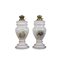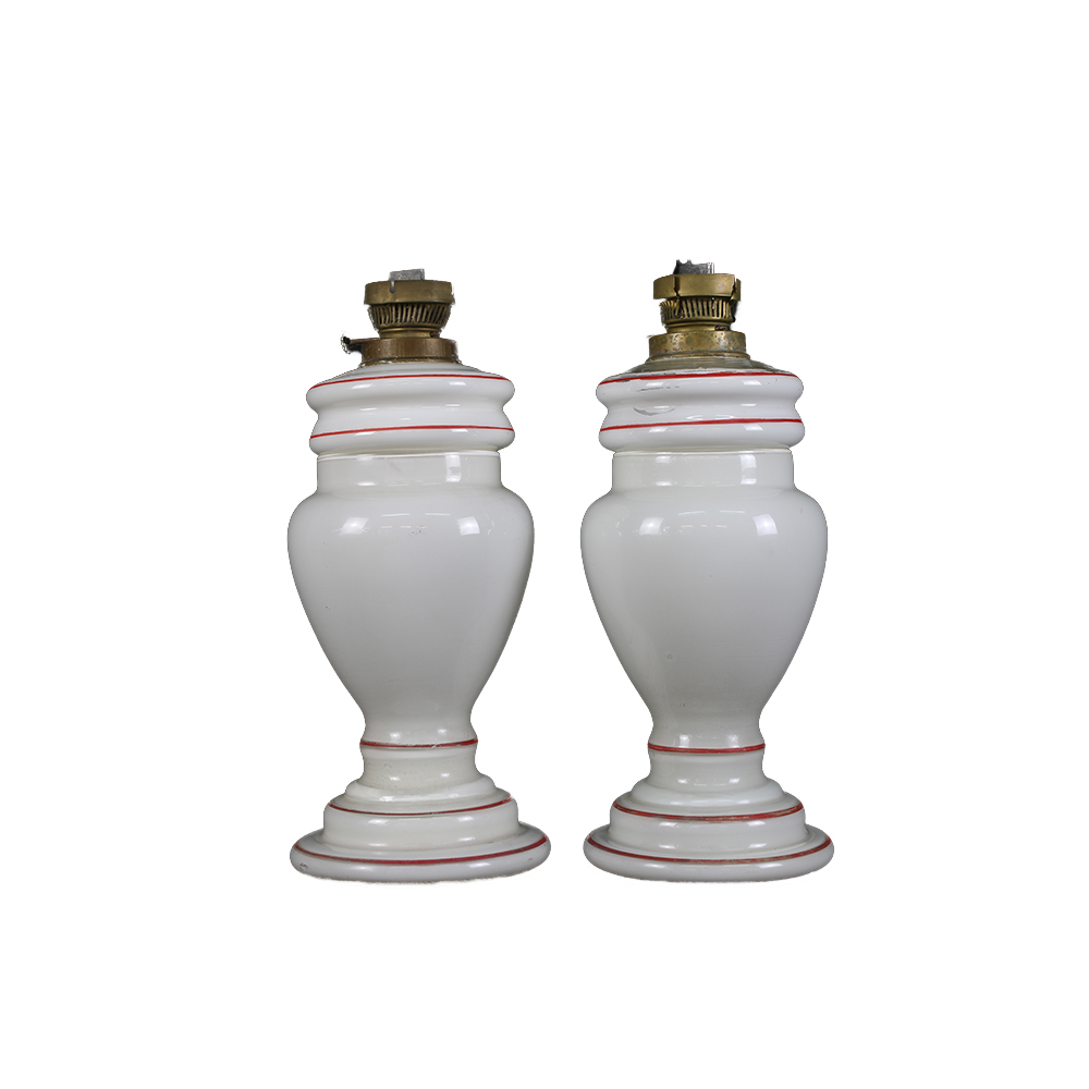 COPPIA DI LUMI in opaline dipinti raffigurante scene galanti Sicilia primi 900 h cm 35 x Ø 16