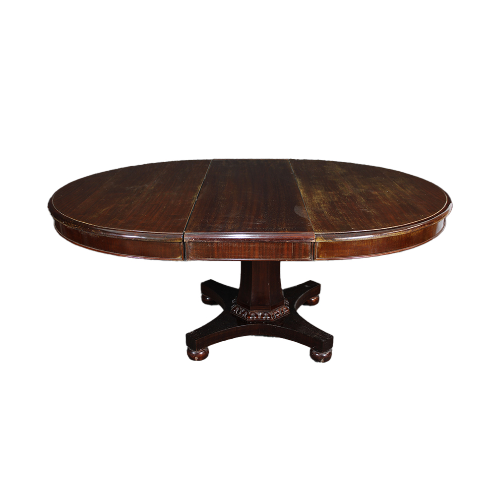 TAVOLO DA PRANZO DI FORMA ROTONDA allungabile con 5 allunghi, piede centrale Inghilterra XIX secolo H 79 X D 135 H 79 X D 355 APERTO