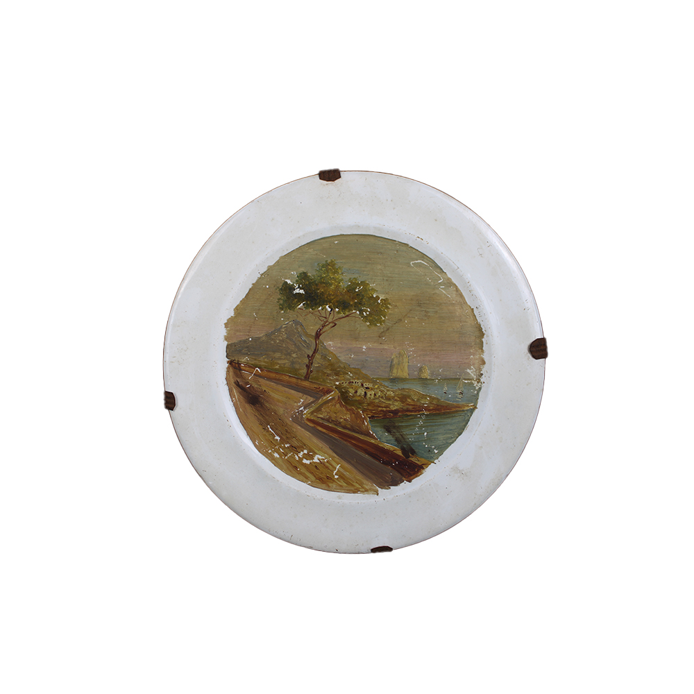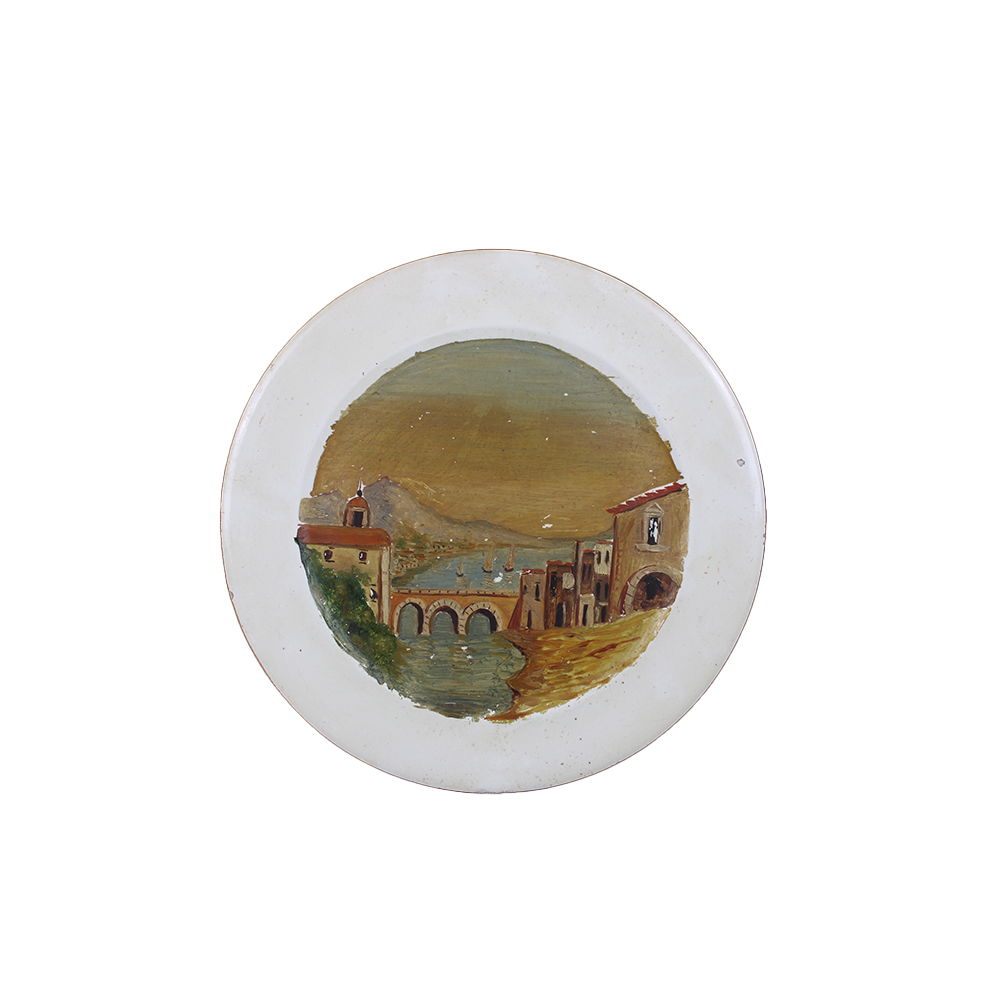 LOTTO DI 3 PIATTI in porcellana bianca dipinta a freddo raffigurante personaggi italiani primi 900 D 30,5 - D 27 - D 27