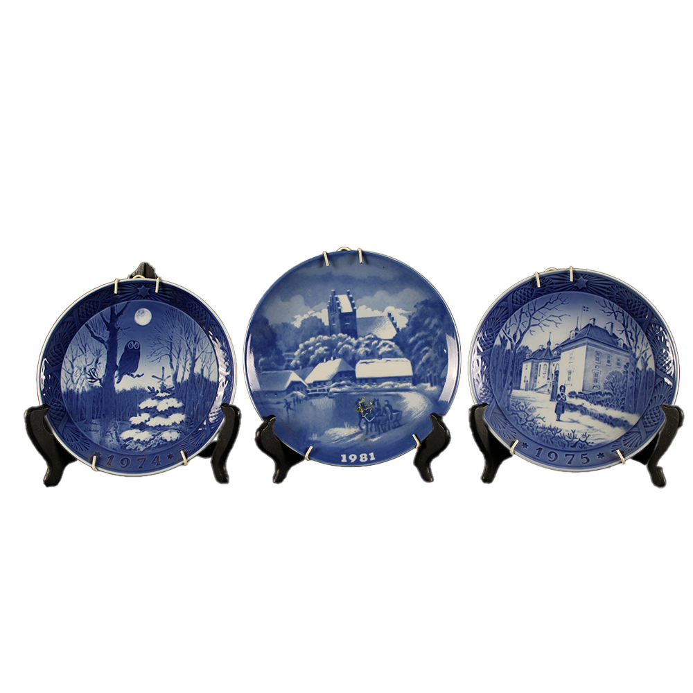 LOTTO COMPOSTO DA 2 piatti Royal Copenaghen ed 1 piatto Milleause Copenaghen in porcellana XX secolo cm Ø 20