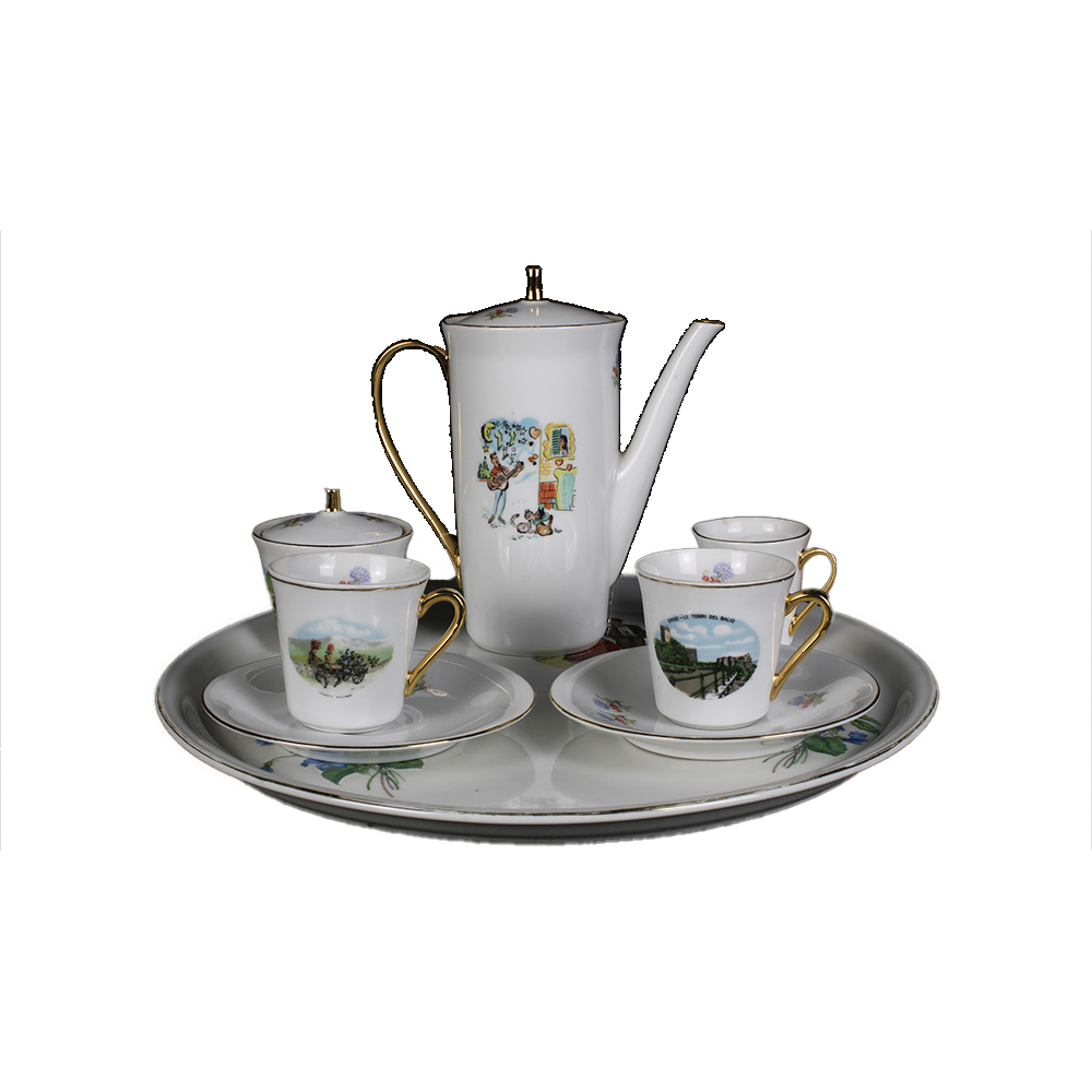 SERVIZIO TETE A TETE in porcellana dipinta raffigurante personaggi e paesaggi manifattura Bavaria XX secolo misure varie