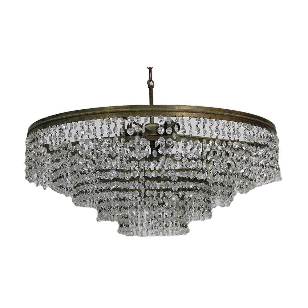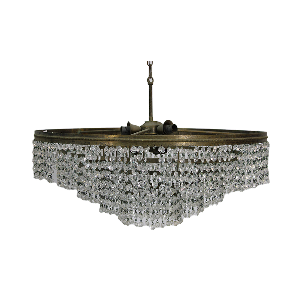 LAMPADARIO A PLAFONIERA in ottone dorato con pendenti in vetro sfaccettato Sicilia primi 900 h cm 42 x Ø 63