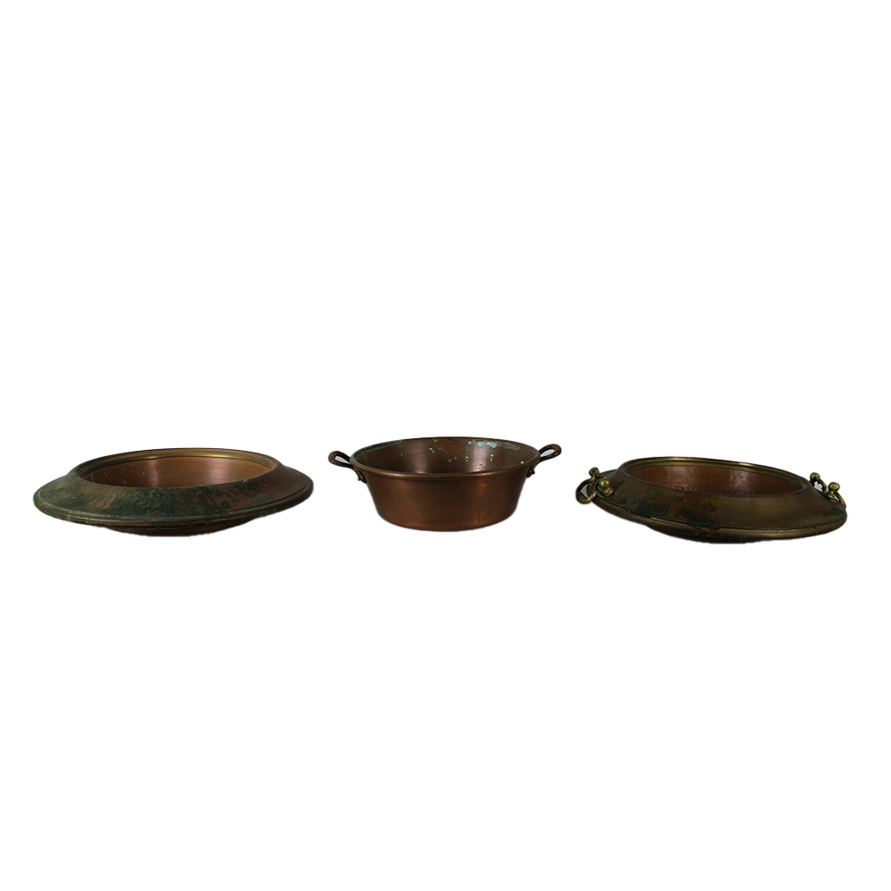 LOTTO COMPOSTO DA 2 bracieri ed 1 pentola in rame maestranze siciliane XX secolo misure varie