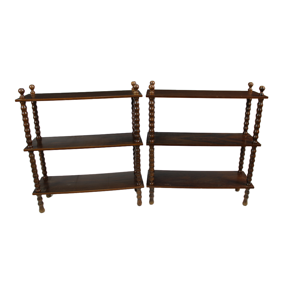 COPPIA DI ETAGERE A GIORNO a 3 ripiani in legno di noce con colonne tornite Sicilia primi 900 h cm 96 x 85 x 28