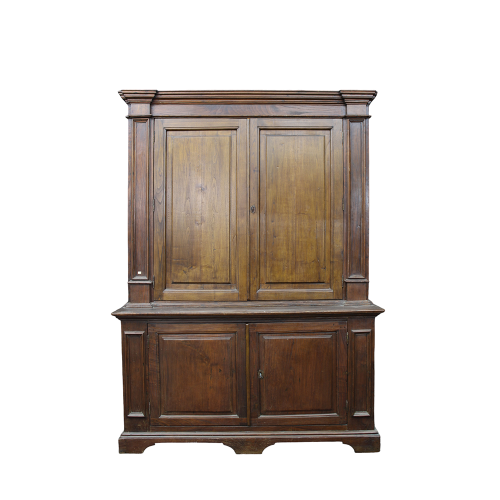 CREDENZA A DOPPIO CORPO in legno di castagno 4 sportelli due nella parte superiore e 2 nella parte inferiore Francia XVIII/XIX secolo h cm 232 x 170 x 56