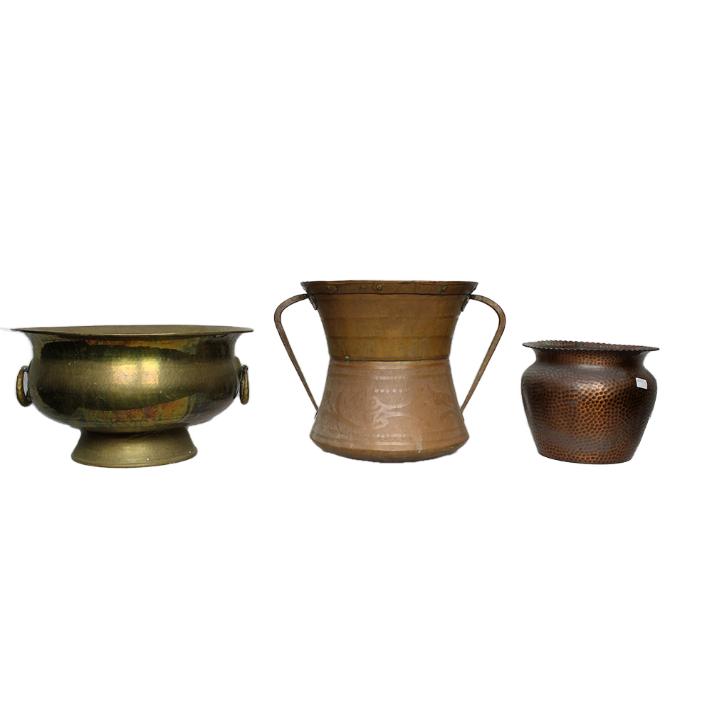 LOTTO COMPOSTO DA 3 porta vasi in rame e ottone martellato Sicilia prima metà del 900 misure varie