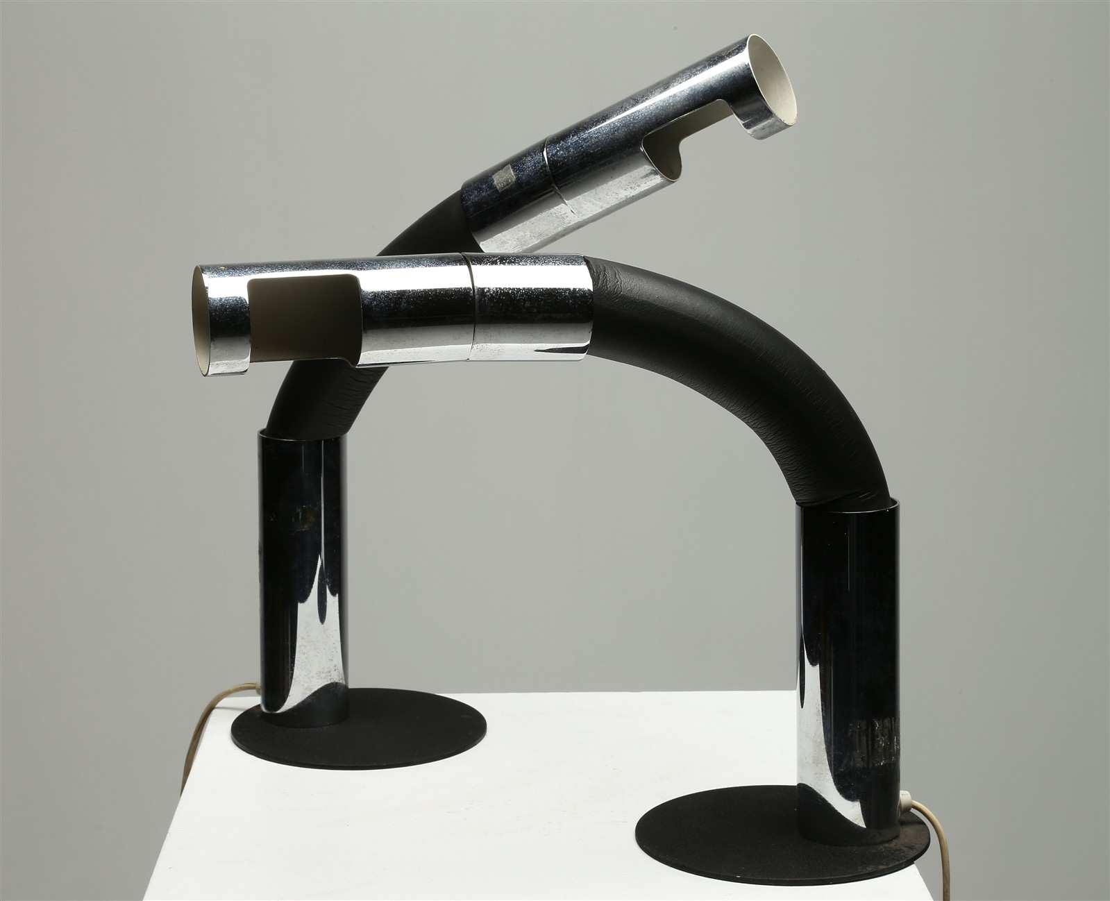 MANIFATTURA ITALIANA DEL XX SECOLO Lotto composto da n.2 lampade da tavolo flessibili. Metallo cromato e plastica. Cm 15,00 x 60,00.