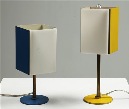 MANIFATTURA ITALIANA Due lampade. Acciao e plexiglass. Cm 9,00 x 26,00 x 9,00. Anni '60.