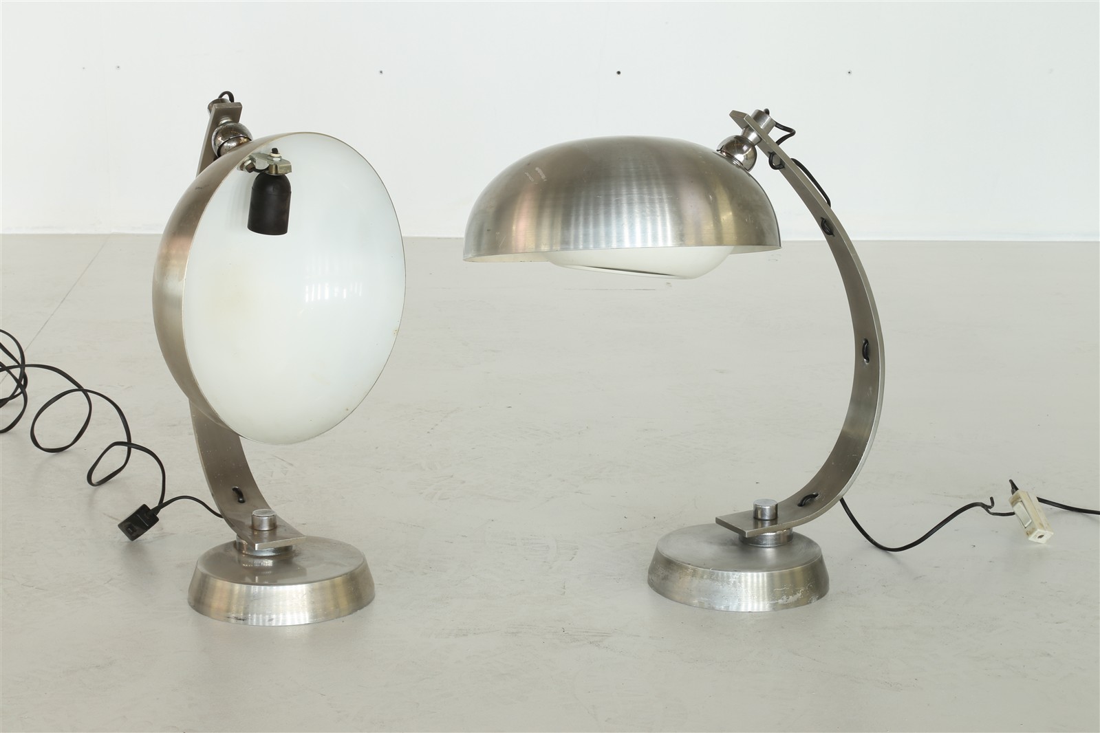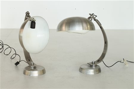 MANIFATTURA DEL XX SECOLO Coppia di lampade. Acciaio cromato. Cm 44,00 x 40,00.
