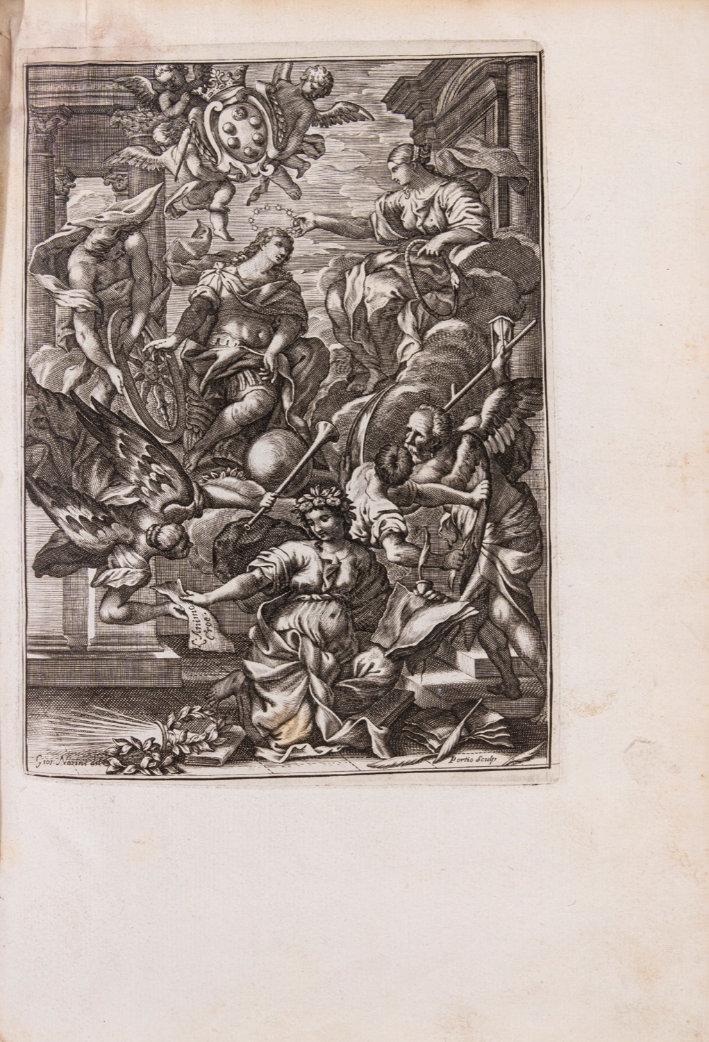 Venetia : per Girolamo Albrizzi, 1689. In 4°. Antiporta allegorica incisa da Portio, fregio xilografico al frontespizio, tracce di umidità al margine interno, parte superiore delle prime carte leggermente staccata, qualche rara fioritura, legatura coeva in piena pergamena rigida riccamente decorata in oro, tagli dorati e decorati, legatura leggermente scollata al piatto anteriore, qualche piccola lacuna. Firma di appartenenza alla carta di guardia.Venetia : per Girolamo Albrizzi, 1689. In 4°. Antiporta allegorica incisa da Portio, fregio xilografico al frontespizio, tracce di umidità al margine interno, parte superiore delle prime carte leggermente staccata, qualche rara fioritura, legatura coeva in piena pergamena rigida riccamente decorata in oro, tagli dorati e decorati, legatura leggermente scollata al piatto anteriore, qualche piccola lacuna. Firma di appartenenza alla carta di guardia.