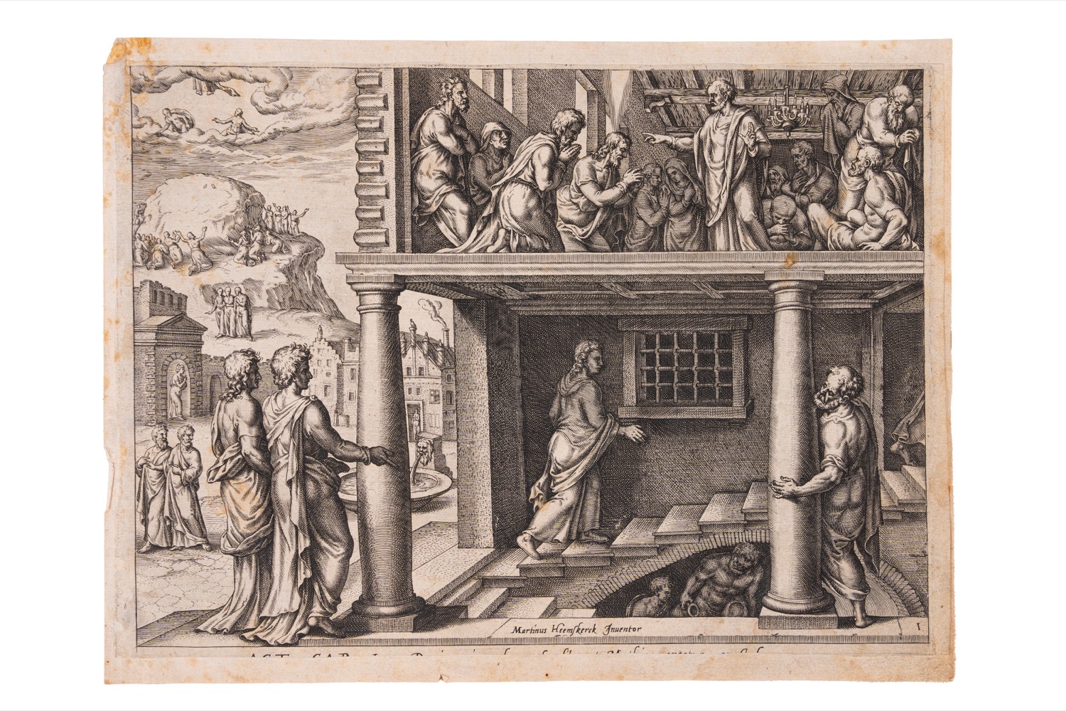 Insieme di 4 incisioni c.ca mm 201 x 275 controfondate della serie Acta Apostolorum incisa da Galle su disegni di Marteen van Heemskerck tra cui L'elezione di Mattia all'apostolato; La sepoltura di Santo Stefano; San Pietro guarisce lo storpio, qualche lieve fioritura.Insieme di 4 incisioni c.ca mm 201 x 275 controfondate della serie Acta Apostolorum incisa da Galle su disegni di Marteen van Heemskerck tra cui L'elezione di Mattia all'apostolato; La sepoltura di Santo Stefano; San Pietro guarisce lo storpio, qualche lieve fioritura.