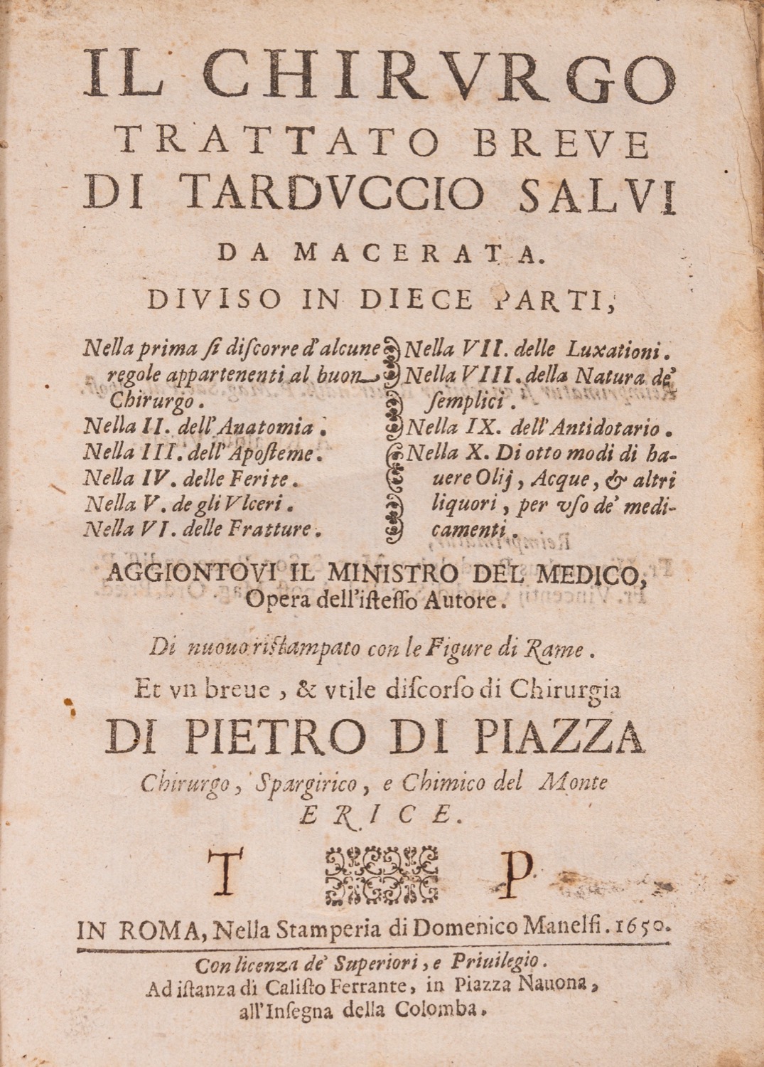 Tarduccio Salvi - Il chirurgo. Trattato breve [...] diviso in diece parti..., 1650 (…)