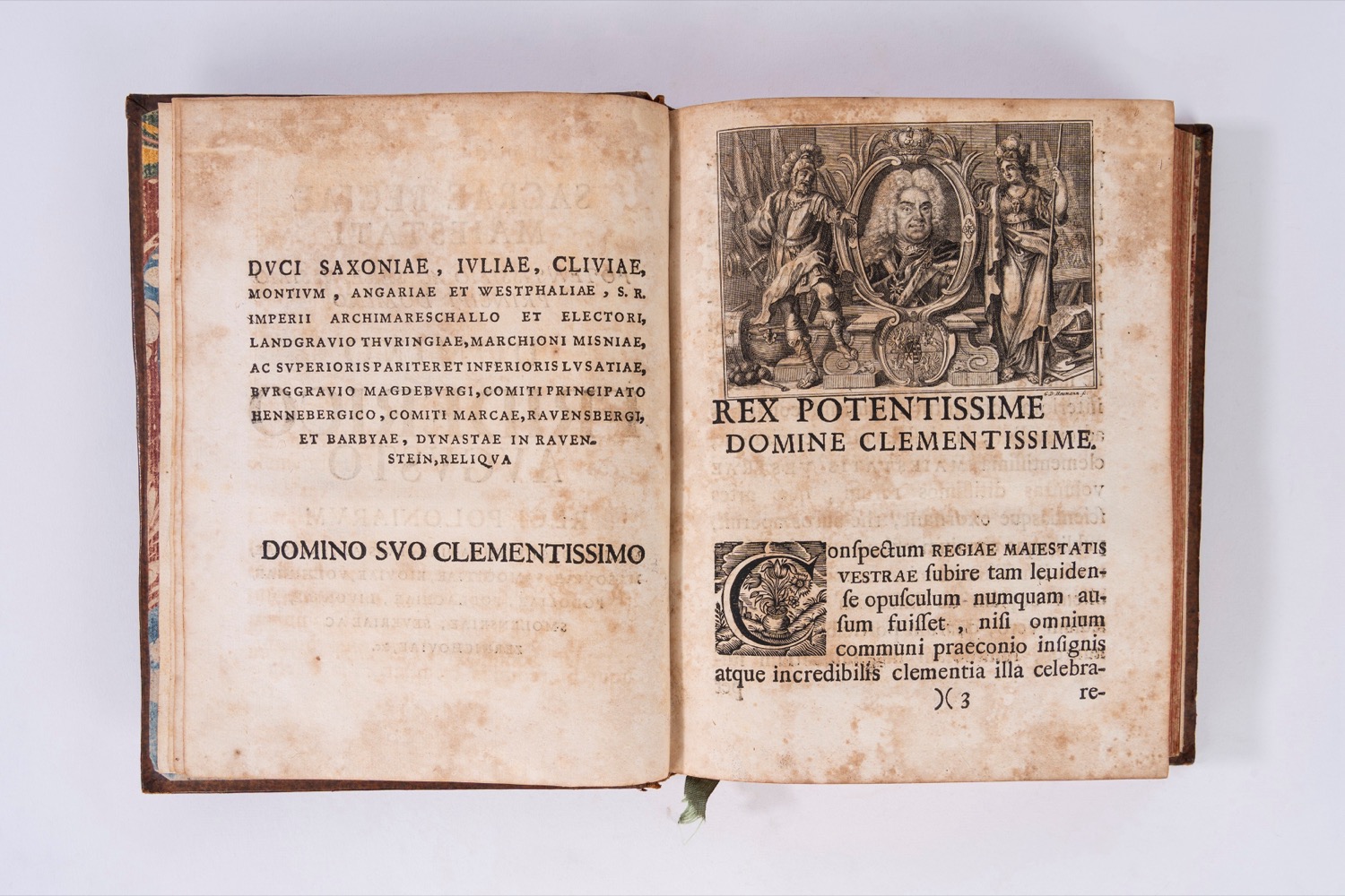 Lipsiae, apud Petrum Conradum Monath, 1728. In-4°; leg. in pelle marrone coeva, dorso a cinque nervi con decori dorati, titolo a caratteri dorati su tassello in pelle rossa, guardie in carta marmorizzata, tagli colorati di rosso a spruzzo, nastrino segna pagine (leggeri segni d'uso alle cerniere); illustrazione calcografica in testata alla dedica, con ritratto del dedicatario, Federico Augusto I (inciso da Georg Daniel Heumann), frontalini calcografici, iniziali, finalini e fregi xilografici, incisioni calcografiche nel testo ed una su pagina intera; testo preceduto da dedica, prefazione e tavola cronologica della storia della medicina. Indicazione d'appartenenza su bella etichetta con incisione calcografica, incollata al contropiatto ant. ("ex libris D. Morand Acad. Paris. Londin. Bonon."). Presenza di leggeri arrossamenti e foxing; opera in condizioni generali molto buone. Lipsiae, apud Petrum Conradum Monath, 1728. In-4°; leg. in pelle marrone coeva, dorso a cinque nervi con decori dorati, titolo a caratteri dorati su tassello in pelle rossa, guardie in carta marmorizzata, tagli colorati di rosso a spruzzo, nastrino segna pagine (leggeri segni d'uso alle cerniere); illustrazione calcografica in testata alla dedica, con ritratto del dedicatario, Federico Augusto I (inciso da Georg Daniel Heumann), frontalini calcografici, iniziali, finalini e fregi xilografici, incisioni calcografiche nel testo ed una su pagina intera; testo preceduto da dedica, prefazione e tavola cronologica della storia della medicina. Indicazione d'appartenenza su bella etichetta con incisione calcografica, incollata al contropiatto ant. ("ex libris D. Morand Acad. Paris. Londin. Bonon."). Presenza di leggeri arrossamenti e foxing; opera in condizioni generali molto buone.