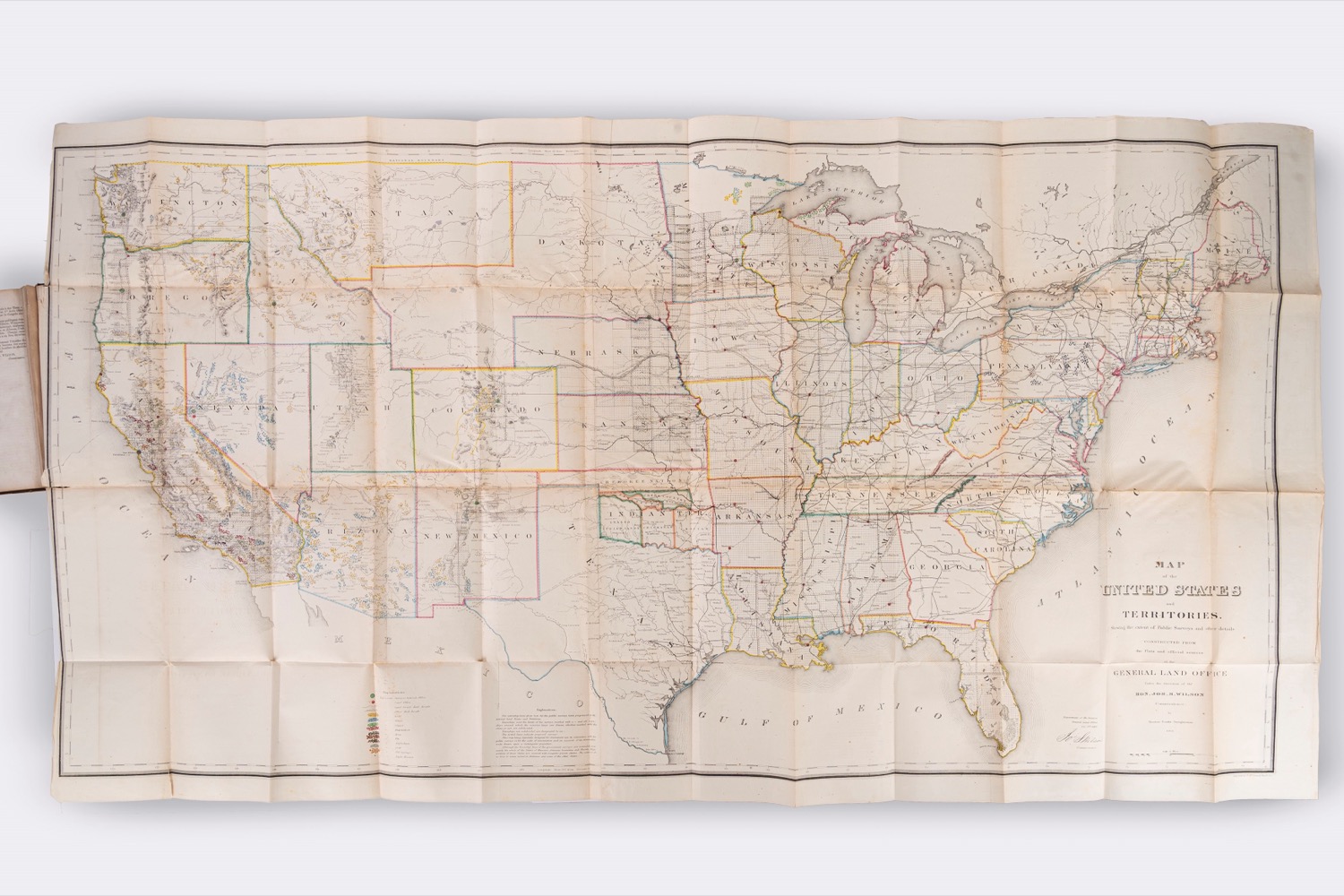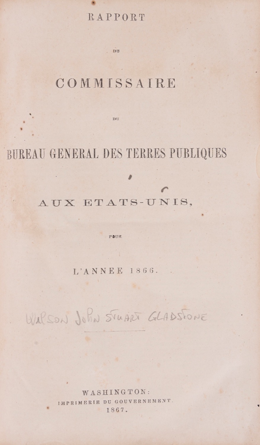 Washington, Imprimerie du gouvernement, 1867. In 8°. 39 pp, leggera brunitura e lievi fioriture, in fine al volume una grande carta litografica con contorni a colori ripiegata degli Stati Uniti, lievi difetti alle piegature, legatura editoriale in chagrin, titolo in oro al piatto entro cornice a secco, lievi segni d'usura. Washington, Imprimerie du gouvernement, 1867. In 8°. 39 pp, leggera brunitura e lievi fioriture, in fine al volume una grande carta litografica con contorni a colori ripiegata degli Stati Uniti, lievi difetti alle piegature, legatura editoriale in chagrin, titolo in oro al piatto entro cornice a secco, lievi segni d'usura.