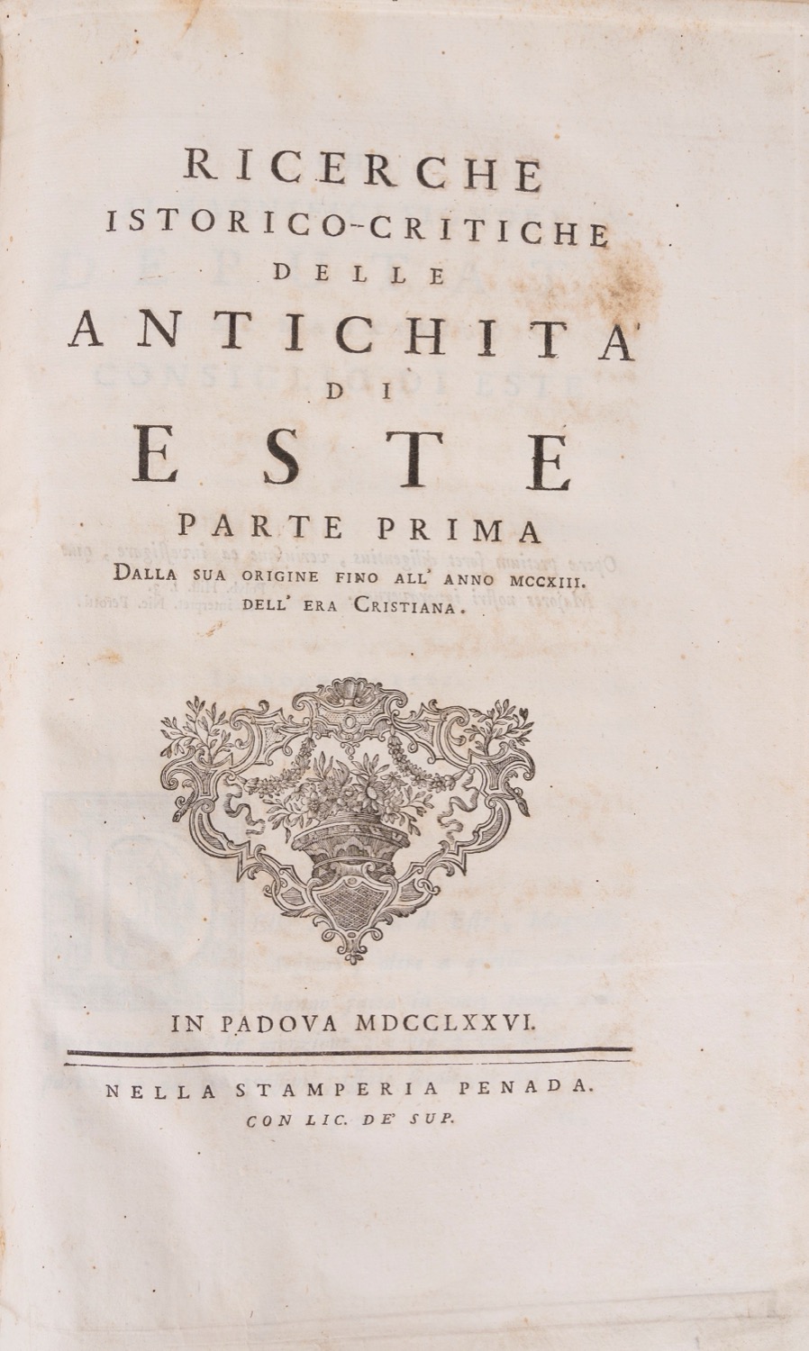 Isidoro Alessi - Ricerche istorico-critiche delle antichita di Este parte prima dalla sua origine fino all'anno 1213. dell'era cristiana, 1776 (…)
