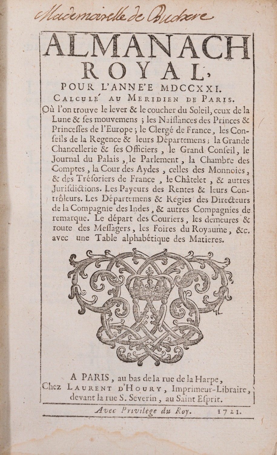 Almanach Royal pour l'anne'e MDCCXXI, 1721 (…)