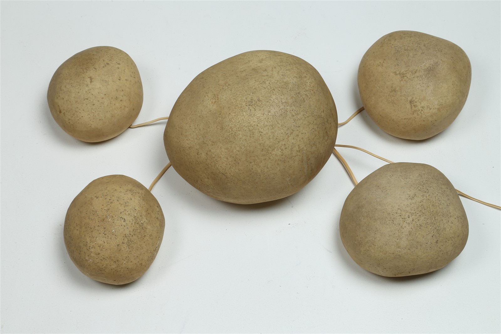 CAZENAVE ANDRE' (1928 - 2003) Lotto composto da n.5 lampade modello Doria. Resina poliestere. . Prodotte per Atelier A dal 1969. Dimensioni: cm 34x30x23 (la più grande); cm 15x22x22 (le due mediane); cm 13x20x15 (le due più piccole). Anni '70. Cornice presente
