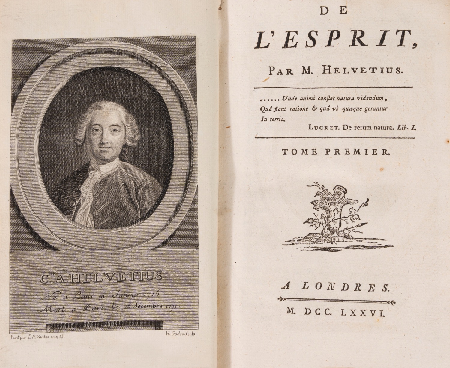 Claude Adrien Helvetius - De l’esprit par M. Helvetius…Oeuvres completes d’Helvetius en quatre tomes, 1776 (…)
