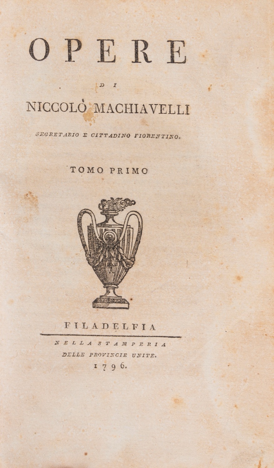 Niccolò Machiavelli - Opere di Niccolò Machiavelli cittadino e segretario fiorentino, 1796 (…)
