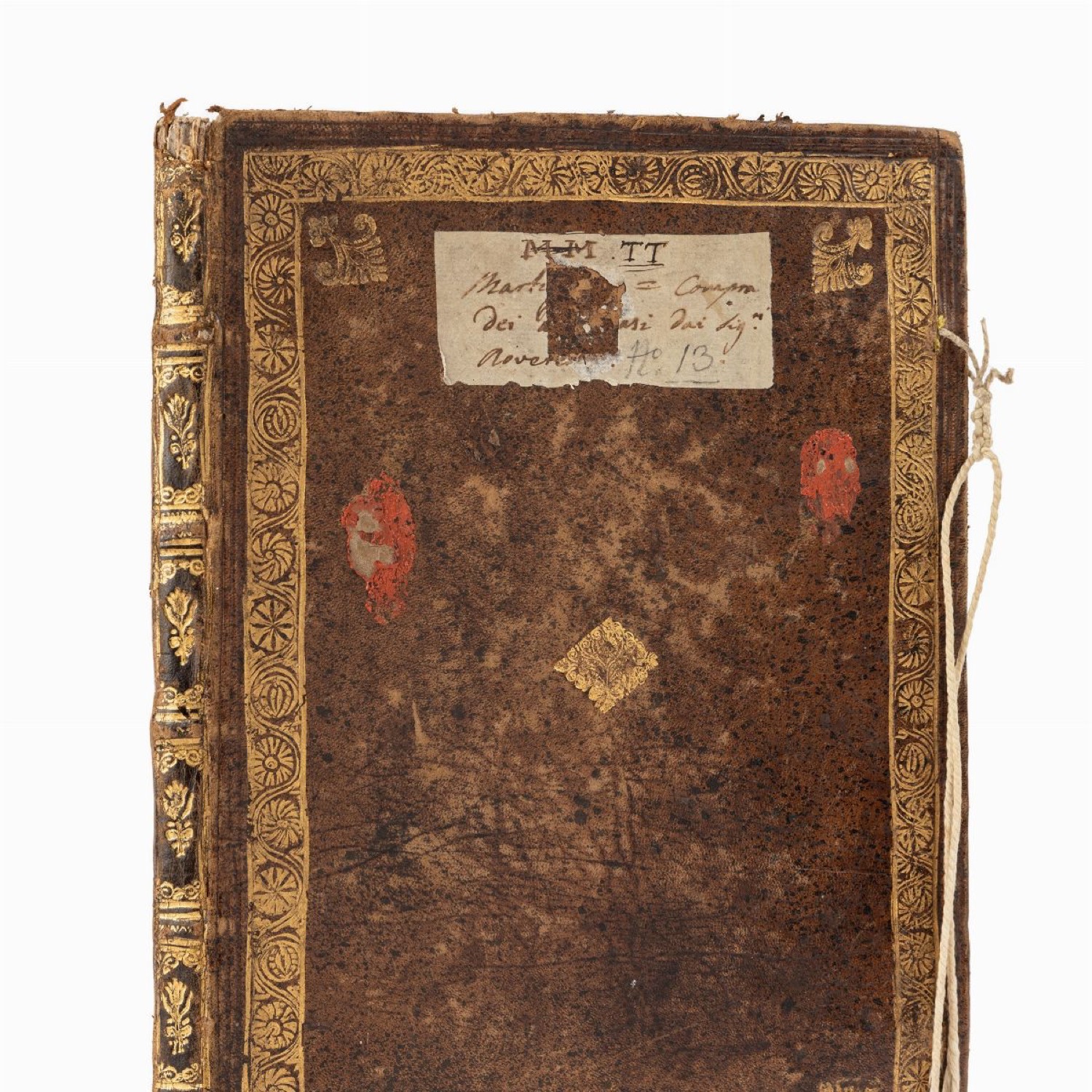 Manoscritto cartaceo di 40 cc. più alcune bianche preliminari e finali, 310 x 210 mm., vergato da un segretario del notaio con sottoscrizioni notarili in diverse carte, datato 4 luglio 1724, sottoscritto a Trento in "contrada delle Hostarie Thodesche, e Stuva di Casa Roveretti" alla presenza di due testimoni. Pregevole legatura in vitello spugnato con decorazioni in oro ai piatti e al dorso, spellature e difetti. Insieme nel lotto altri documenti sempre inerenti le proprietà dei Rovereti, inclusa una compravendita con Gio. Battista Guidotino datata 1686. Manoscritto cartaceo di 40 cc. più alcune bianche preliminari e finali, 310 x 210 mm., vergato da un segretario del notaio con sottoscrizioni notarili in diverse carte, datato 4 luglio 1724, sottoscritto a Trento in "contrada delle Hostarie Thodesche, e Stuva di Casa Roveretti" alla presenza di due testimoni. Pregevole legatura in vitello spugnato con decorazioni in oro ai piatti e al dorso, spellature e difetti. Insieme nel lotto altri documenti sempre inerenti le proprietà dei Rovereti, inclusa una compravendita con Gio. Battista Guidotino datata 1686.