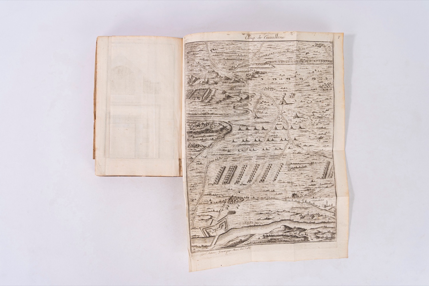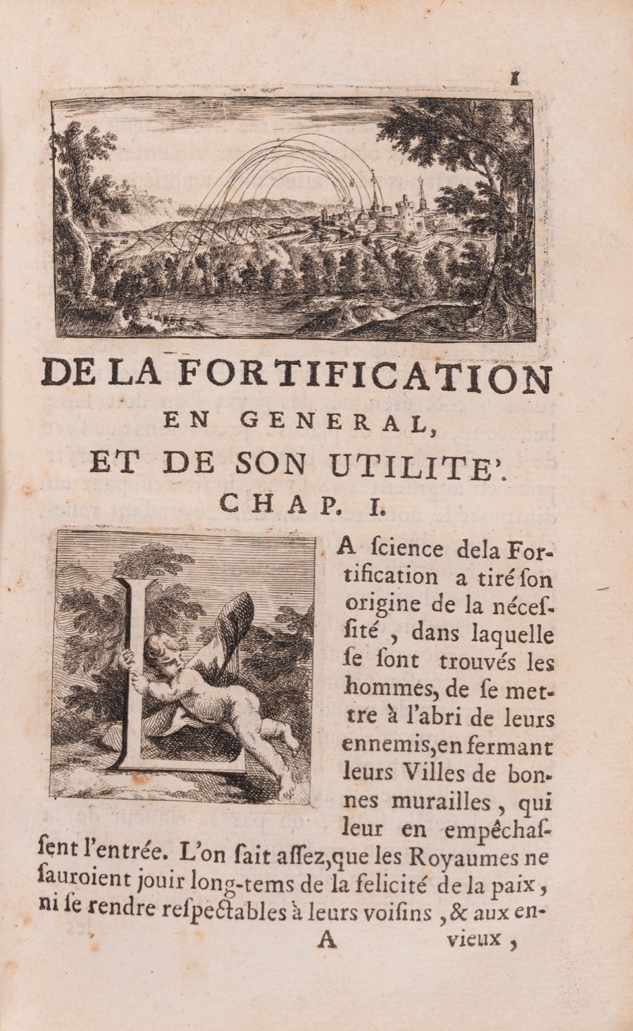 Torino, Stamperia Reale, 1744. In 8°. Stemma sabaudo inciso in legno al frontespizio, due belle incisioni militari nel testo e 11 tavole ripiegate finemente incise da Marcantonio Dal Re, raffiguranti esempi di fortificazioni, costruzioni militari e accampamenti di fanteria e cavalleria, piccola macchia di inchiostro al frontespizio, rarissime lievi fioriture e arrossature, legatura coeva in pelle, titolo in oro entro tassello al dorso, spellature, lievi difetti.