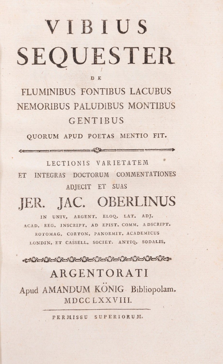 Vibio Sequestre - De fluminibus fontibus lacubus nemoribus paludibus montibus gentibus, 1778 (…)