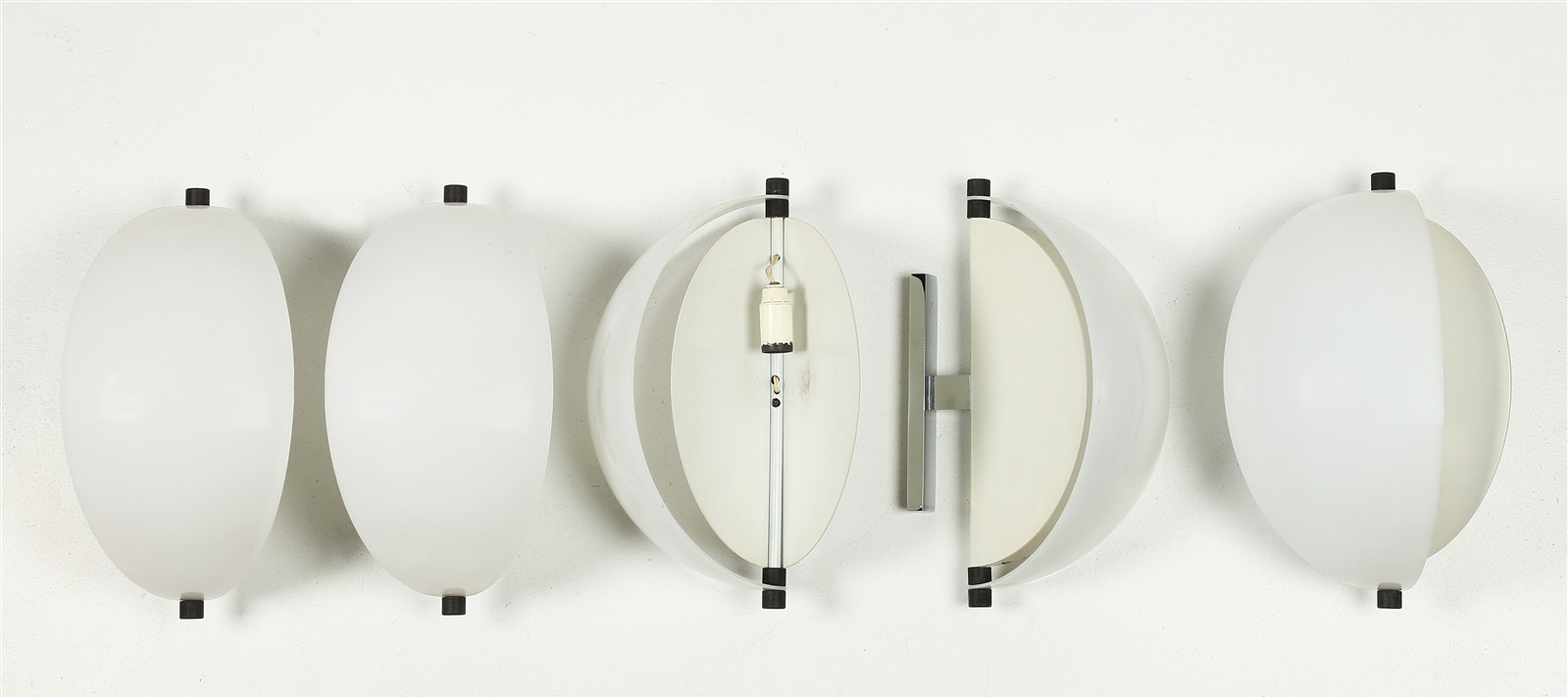 MANIFATTURA ITALIANA Lotto composto da n.5 appliques. Acciao e plexiglass. Cm 3,00 x 37,00 x 20,00. Anni '70.
