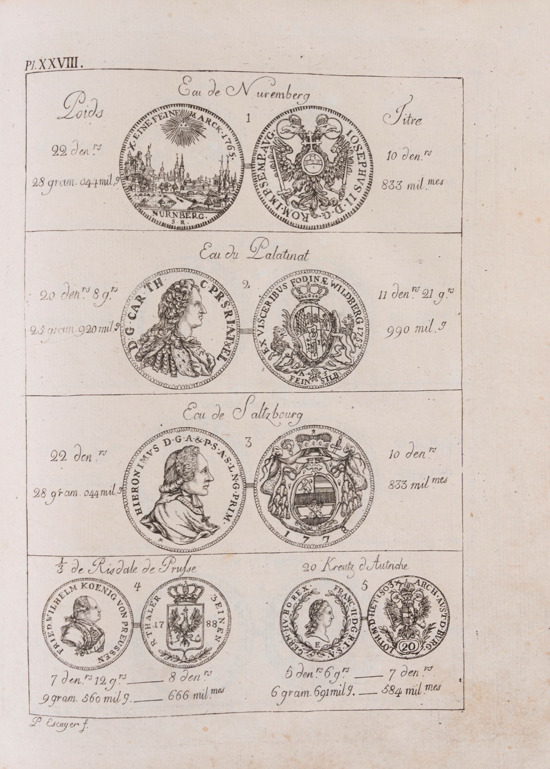 Hugues Darier - Tableau du titre, poids et valeur, des differentes monnaies d'or et d'argent, 1807 (…)