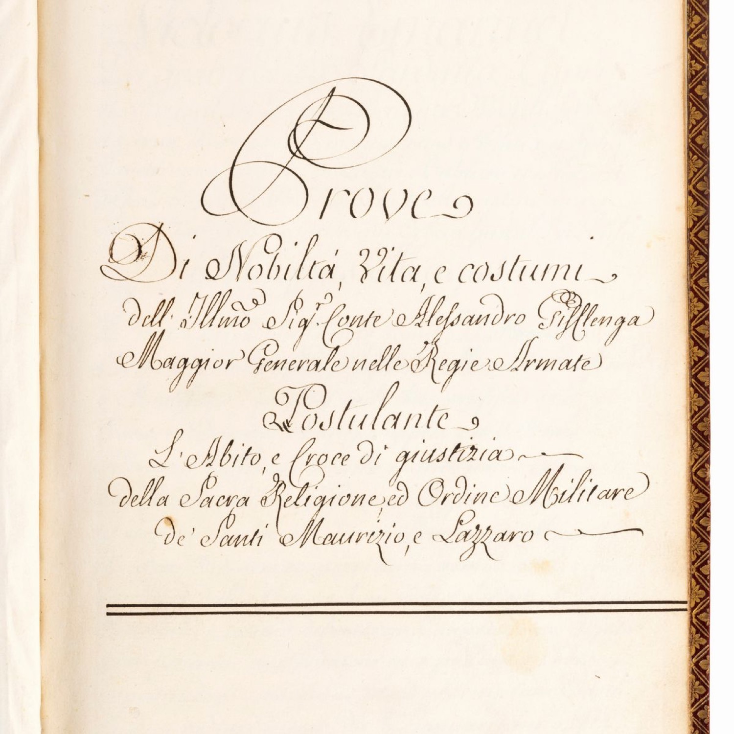 Prove di Nobiltà vita e Costumi dell'Ill.mo Sig. Conte Alessandro Gifflenga Maggior Generale nelle Regie Armate Postulante L'Abito e Croce di Giu (…)
