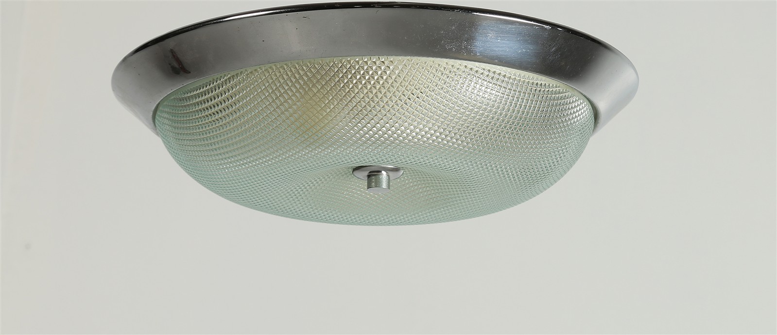 MANIFATTURA DEL XX SECOLO Plafoniera. Metallo cromato e vetro. Cm 34,00 x...