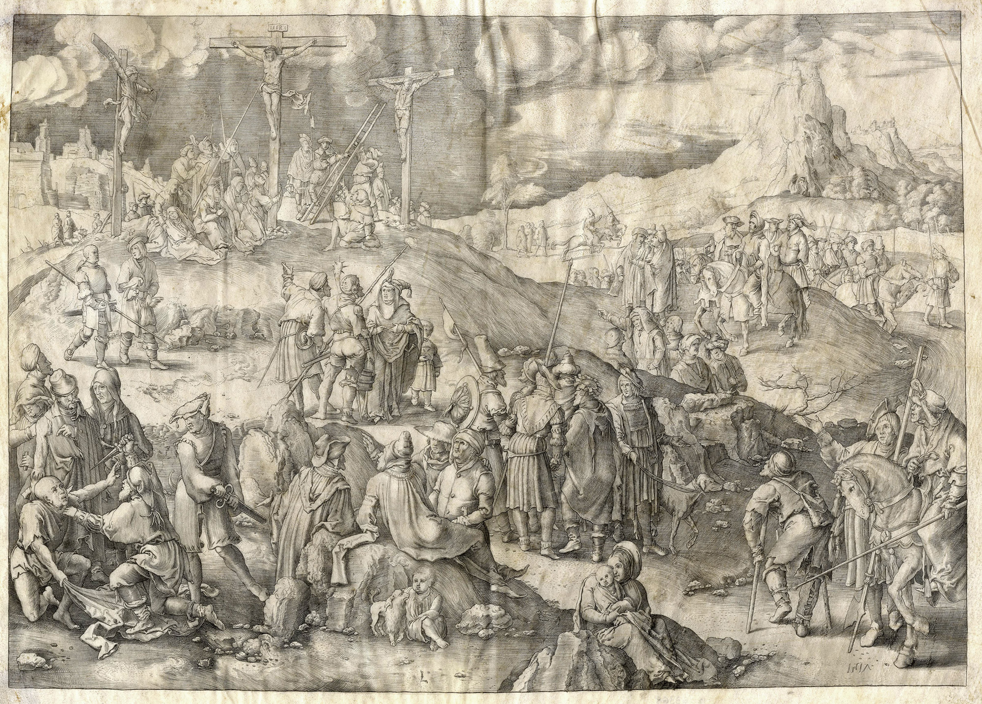 Lucas Van Leyden [da], Il Calvario. 1600 ca. Bulino su pergamena. mm 285x398....