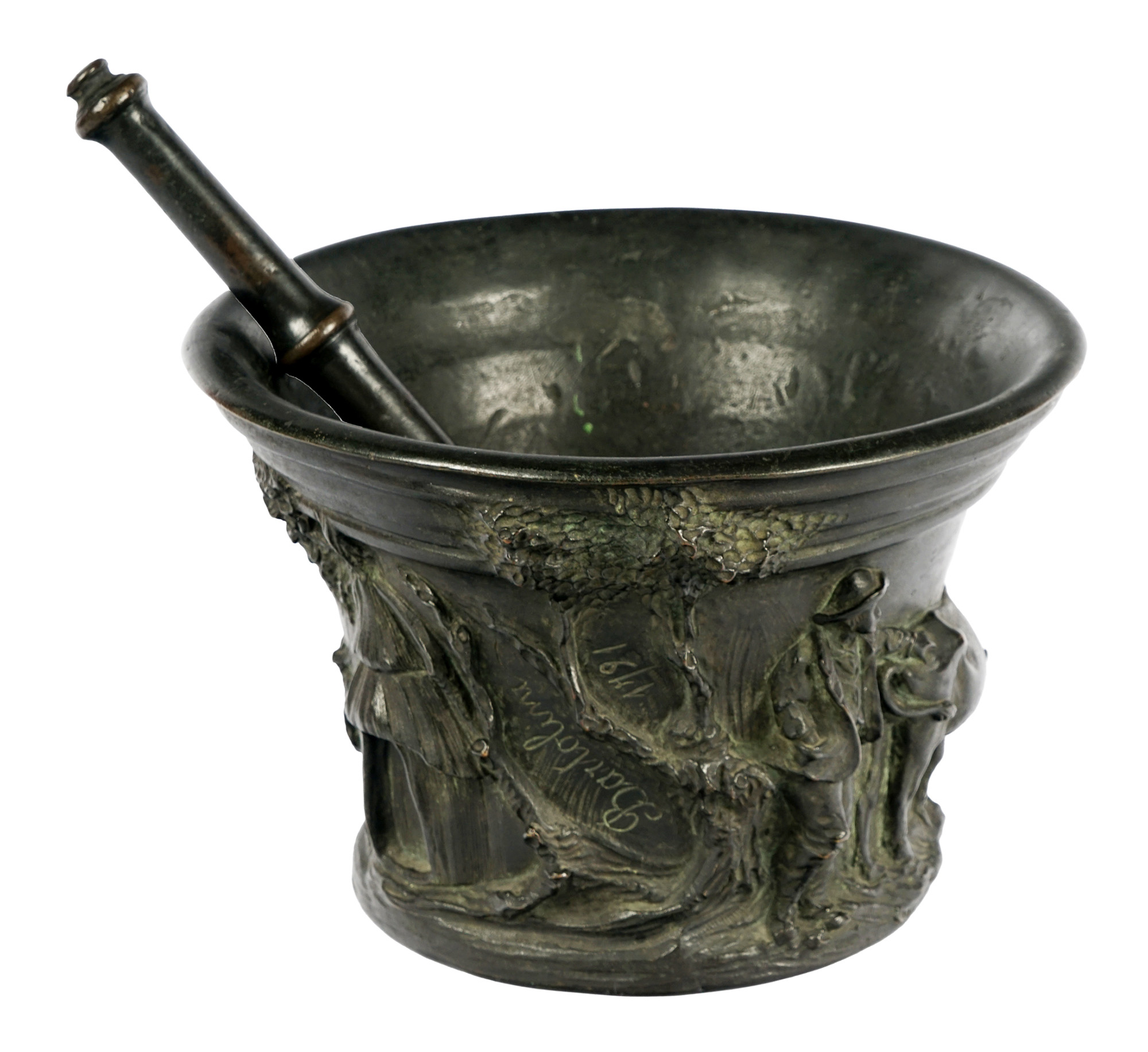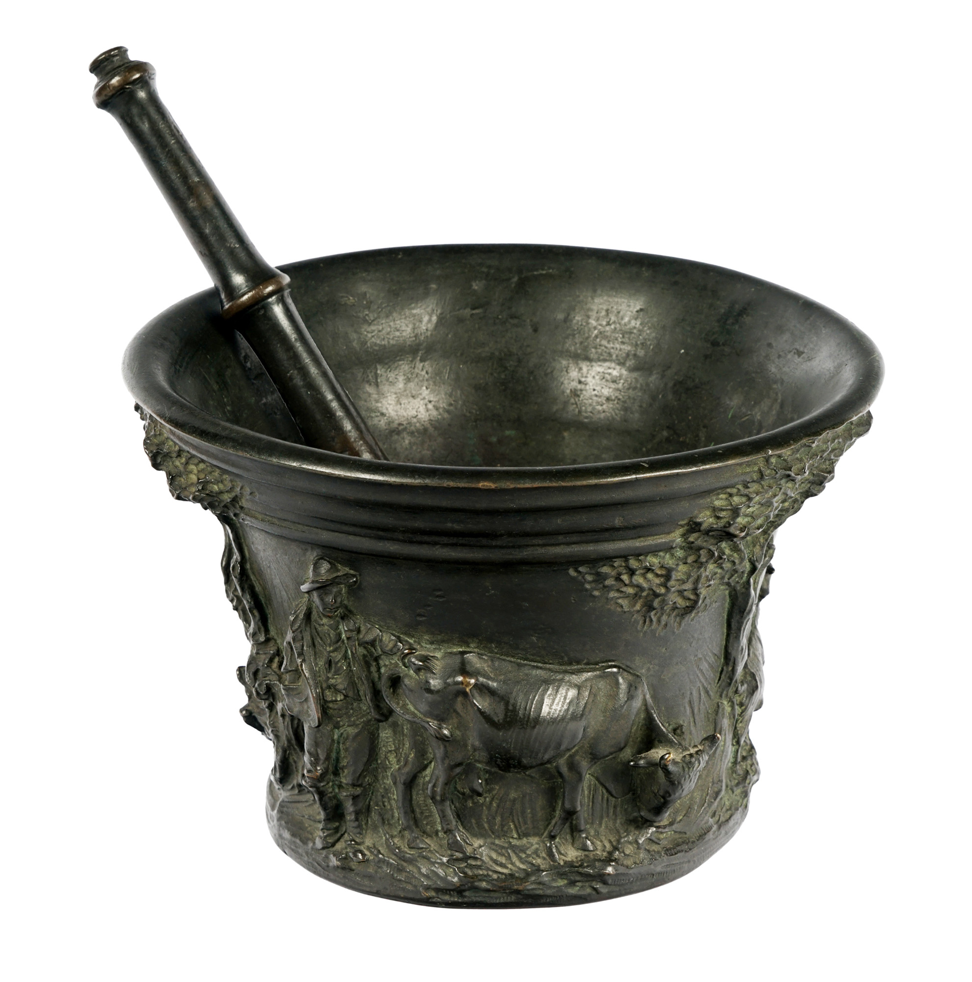 Lorenzo Bartolini, Mortaio in bronzo con scene pastorali sulla fascia e pestello. 1791.