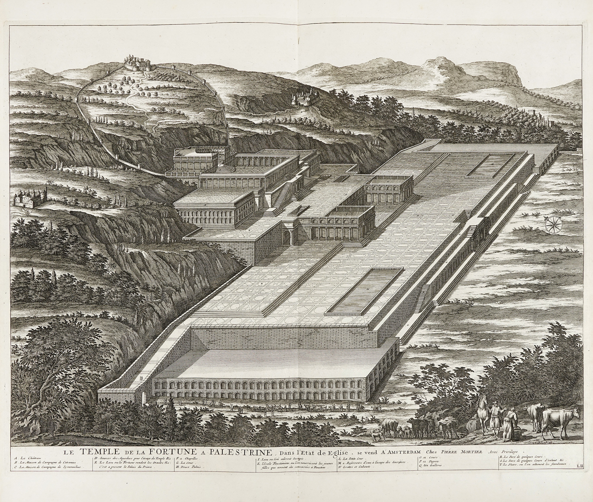Johannes Blaeu e Pierre Mortier, Le Temple de la Fortune a Palestrine, Dans l'Etat de Eglise / Temple de la Fortune à Palestrine, le devant. A Amsterdam : par les soins de Pierre Mortier libraire, 1704.