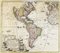 Incisione in rame in coloritura. mm 470x530. Foglio: mm 480x565. Mappa raffigurante in dettaglio il Nord e il Sud America, nonché le porzioni occidentali dell'Europa e dell'Africa. In basso a sinistra grande cartiglio decorativo per il titolo con figure di nativi in costume e vulcani in eruzione. Rispetto al precedente modello di Jean Baptiste Homann, la cartografia risulta più— precisa a seguito delle esplorazioni dei francesi all'interno del continente e fornisce nuovi dettagli sull'entroterra del Nord America, in particolare lungo il fiume Mississippi. La California viene quiŠ correttamente rappresentata come penisola, anche se mancano i riferimenti a nord della regione, e in generale la cartografia del Sud America èŠ vistosamente riveduta. Al momento della pubblicazione, la costa nord occidentale dell'America e il Passaggio a Nord-Ovest erano ancora inesplorati. (1) Margini verosimilmente come in origine. Piega di legatura in verticale al centro con brachetta al verso. Lieve diffuso ingiallimento del foglio e minimi segni d'uso.