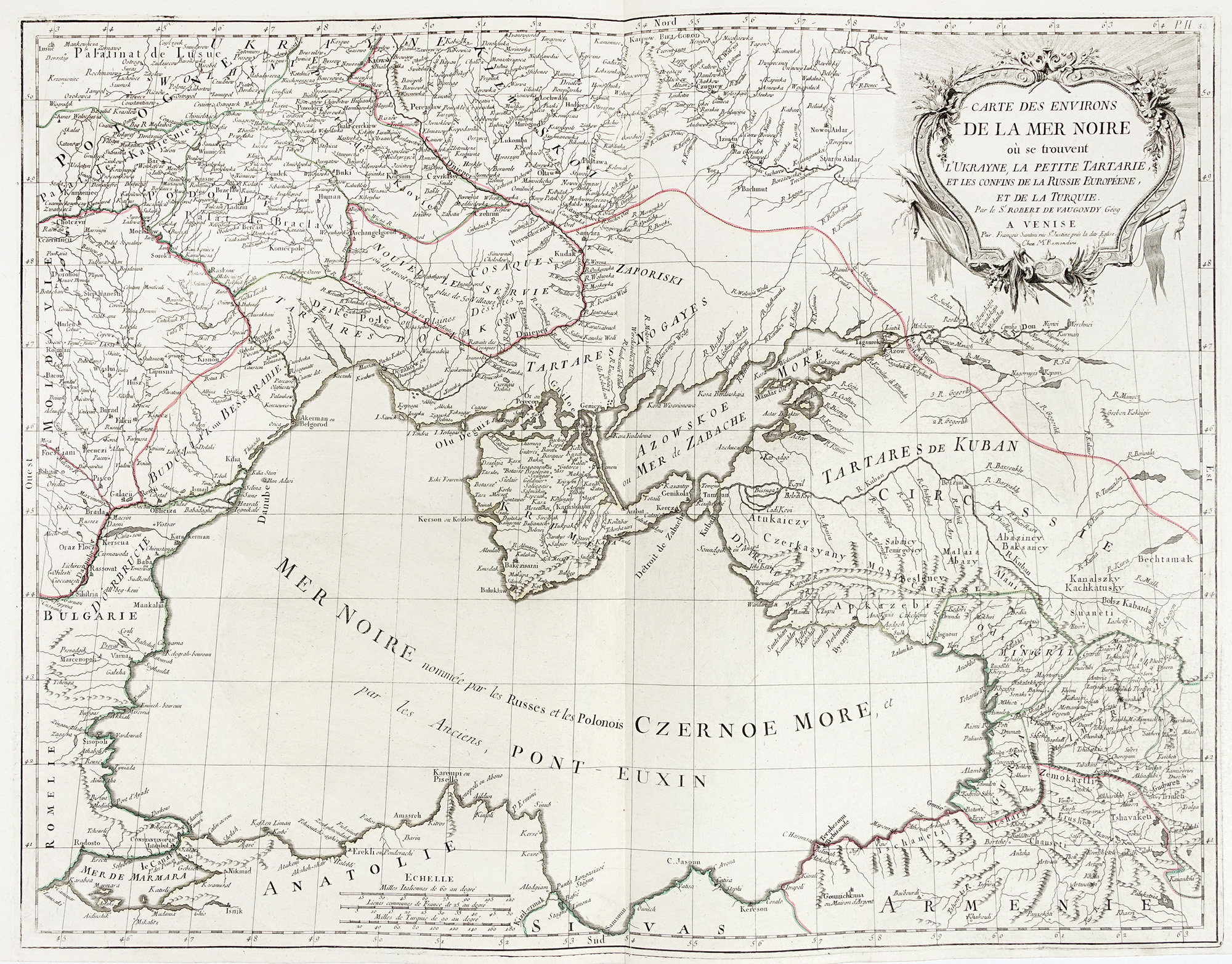 Paolo Santini Didier Robert de Vaugondy, Carte des environs de la Mer Noire où se trouvent l'Ukrayne, la Petite Tartarie et les confins de la Russie Européene, et de la Turquie. À Venise: Par François Santini rue S.te Justine prés la dit Eglise Chez M. Remondini, 1784.