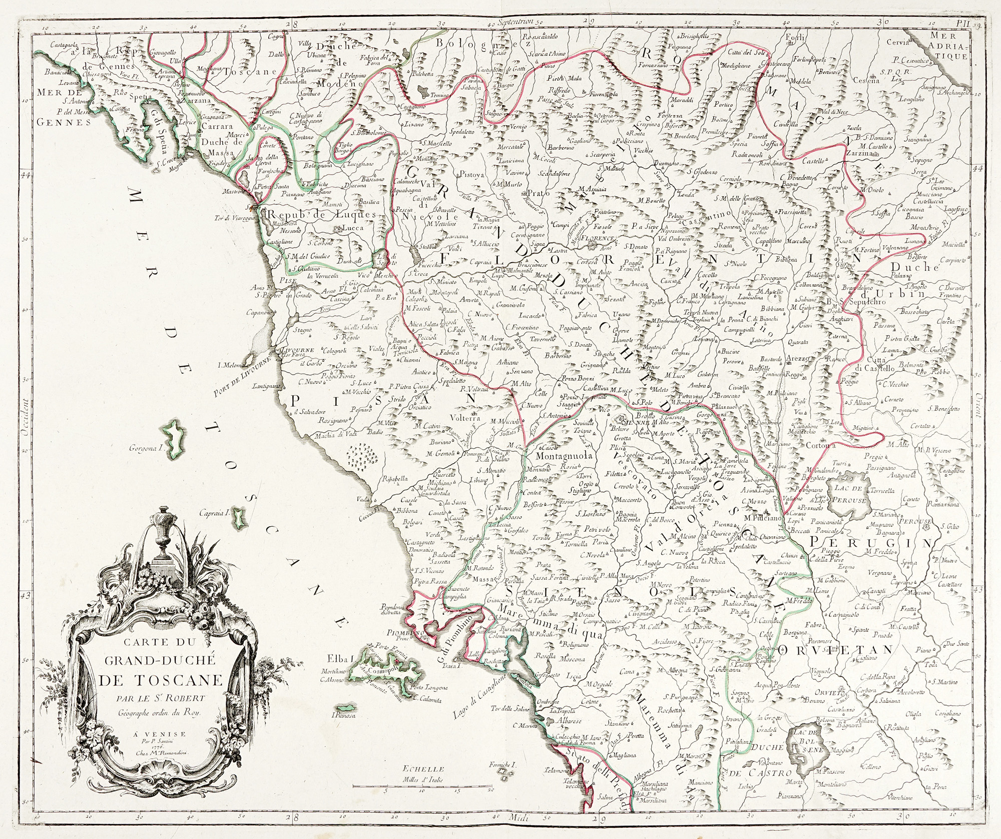 Paolo Santini Didier Robert de Vaugondy, Carte du Grand-Duché de Toscane par le Sr. Robert Géographe Ordin. du Roy. À Venise: Par P. Santini Chez M. Remondini, 1776.