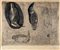 Acquaforte su velina applicata. mm 250x330. Foglio: mm 311x366. Petrucci 12; Marchiori, Luigi Bartolini XXVII; Gli esemplari unici p. 127. Firma e data in lastra in basso a sinistra. In alto a sinistra, ma in senso contrario alla lastra, firma a matita e "prova non riuscita". (1) Foglio brunito applicato a passe-partout. Alcune grinze della velina, motivo per il quale può essere che l'opera non sia stata reputata la prova di stampa riuscita.