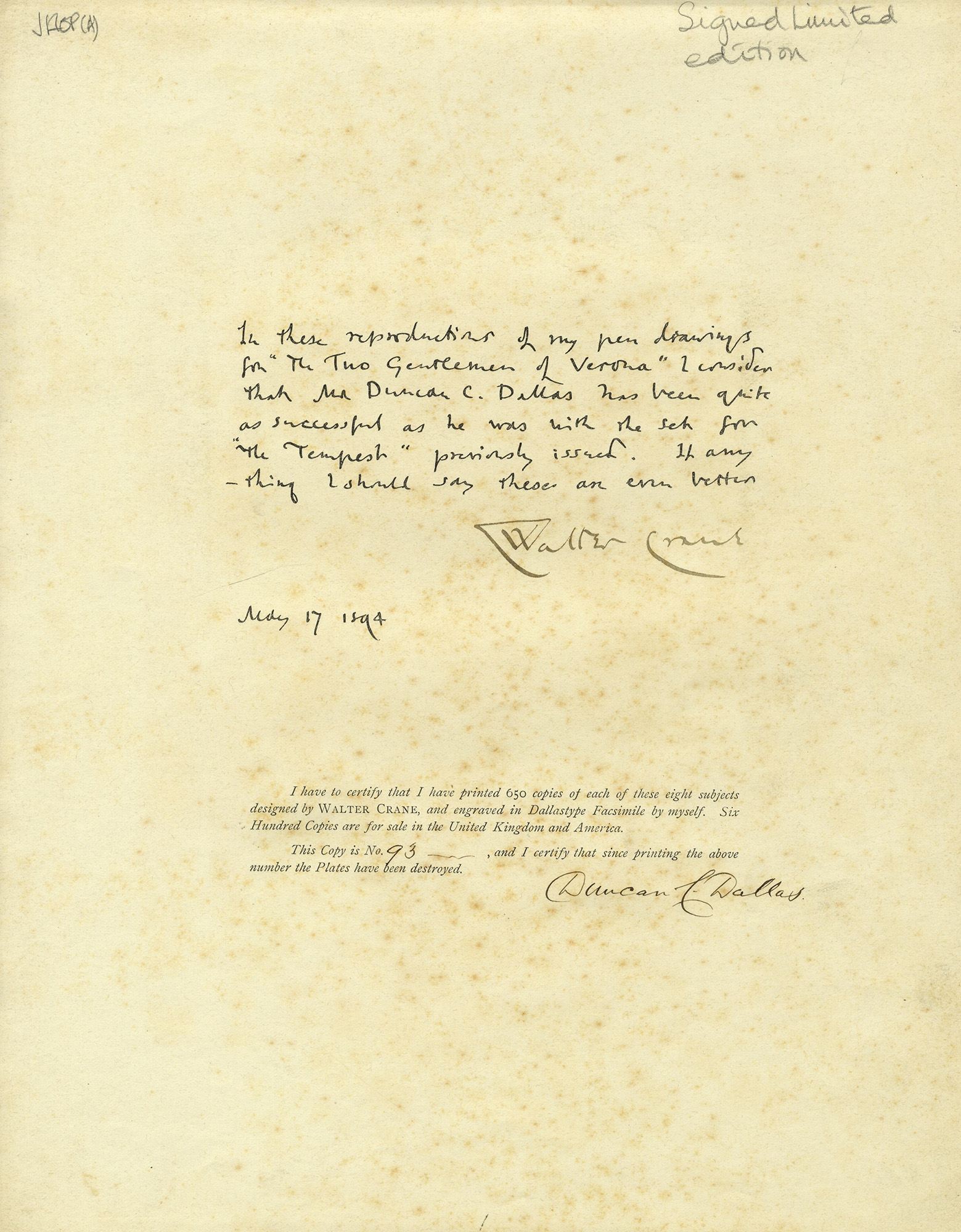 Walter Crane, Eight illustrations to Shakespeare's Two Gentlemen Of Verona by...