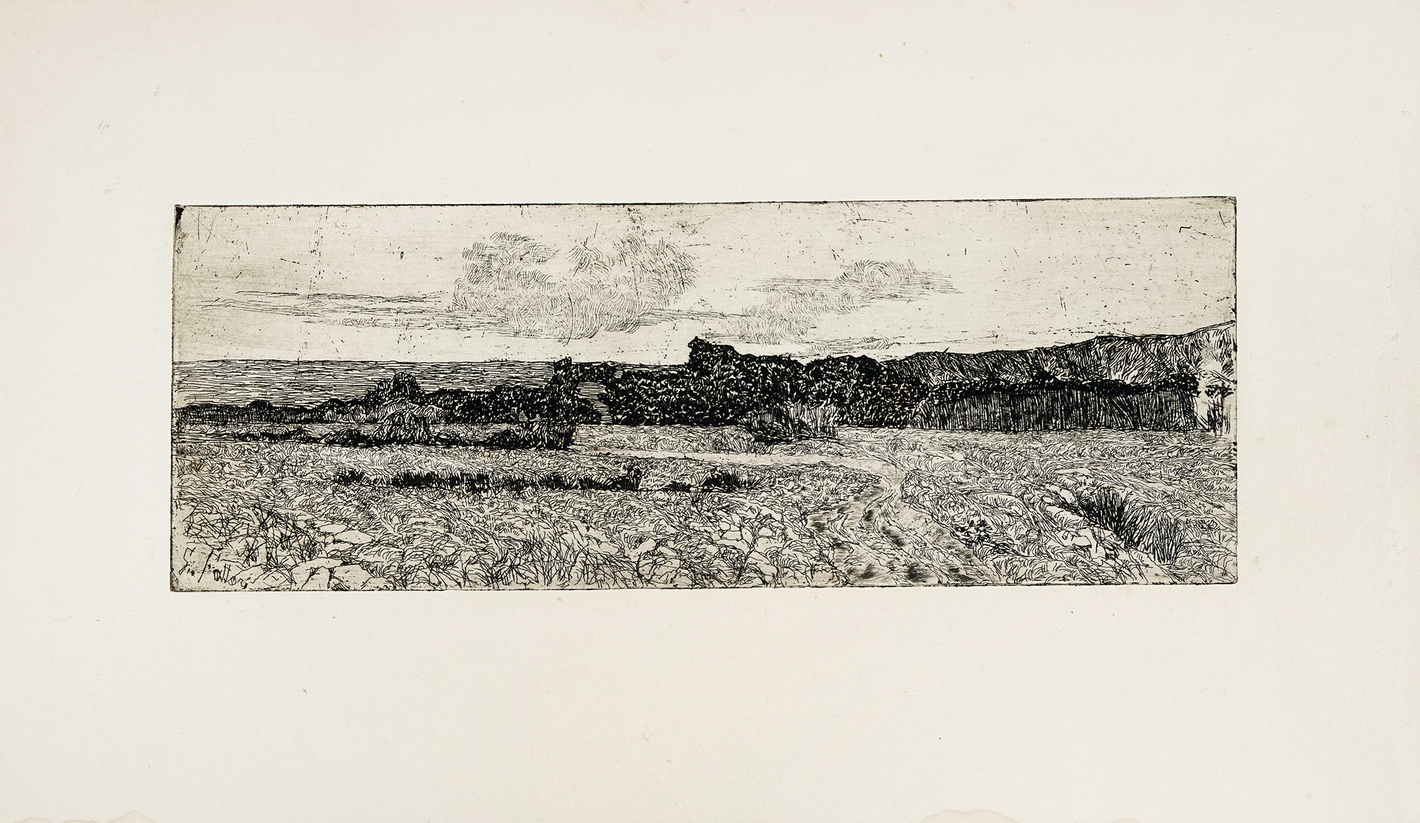 Giovanni Fattori, Paesaggio maremmano. Acquaforte su zinco. mm 119x326....