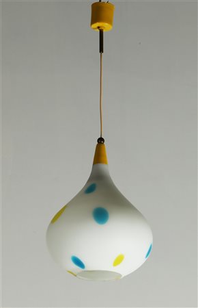 MANIFATTURA ITALIANA DEL XX SECOLO Lampadario. Metallo, vetro satinato. Cm 25,00 x 70,00. Anni '60.