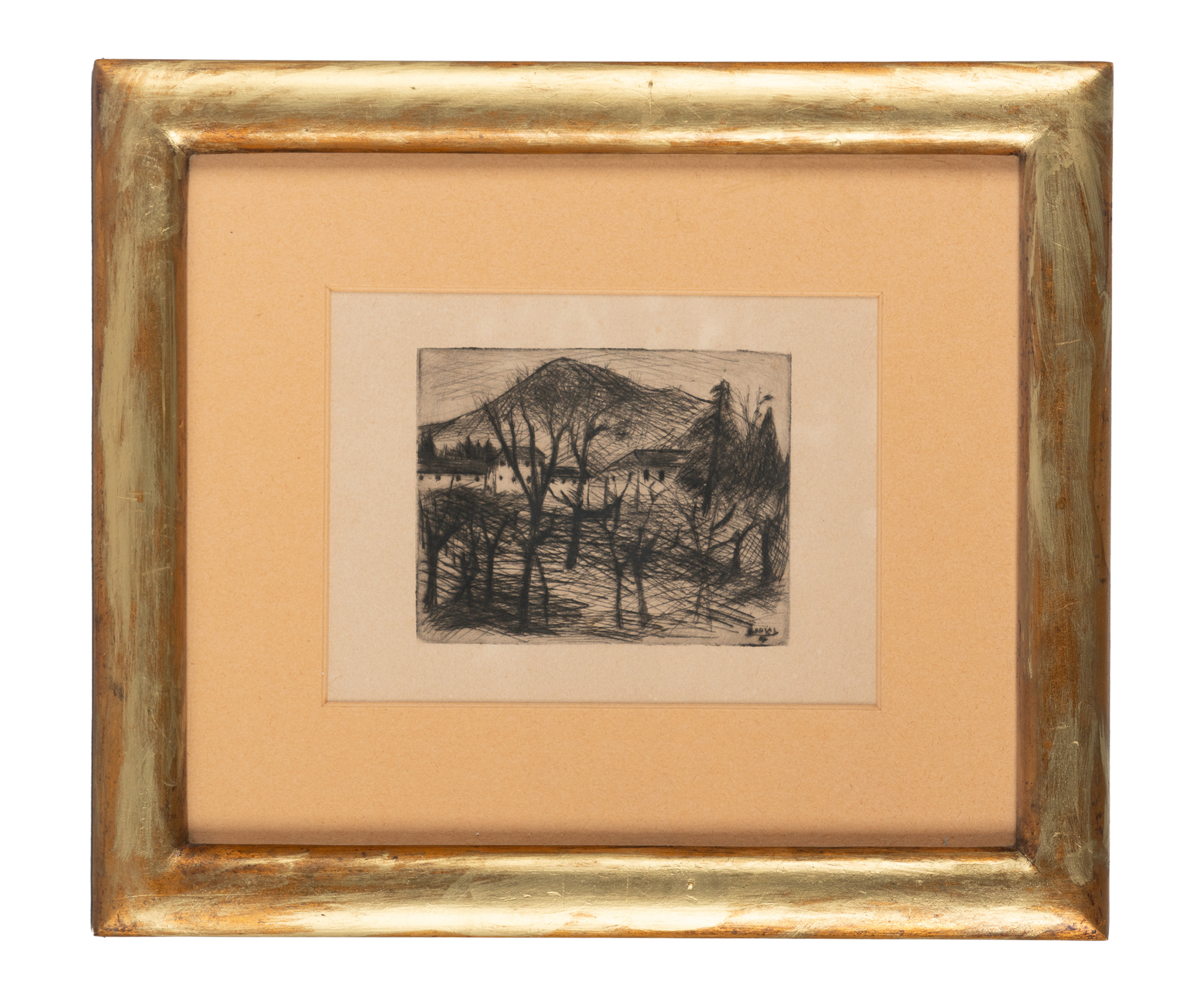 Ottone Rosai, Paesaggio. 1940. Acquaforte. mm 120x150. Foglio: mm 186x302....