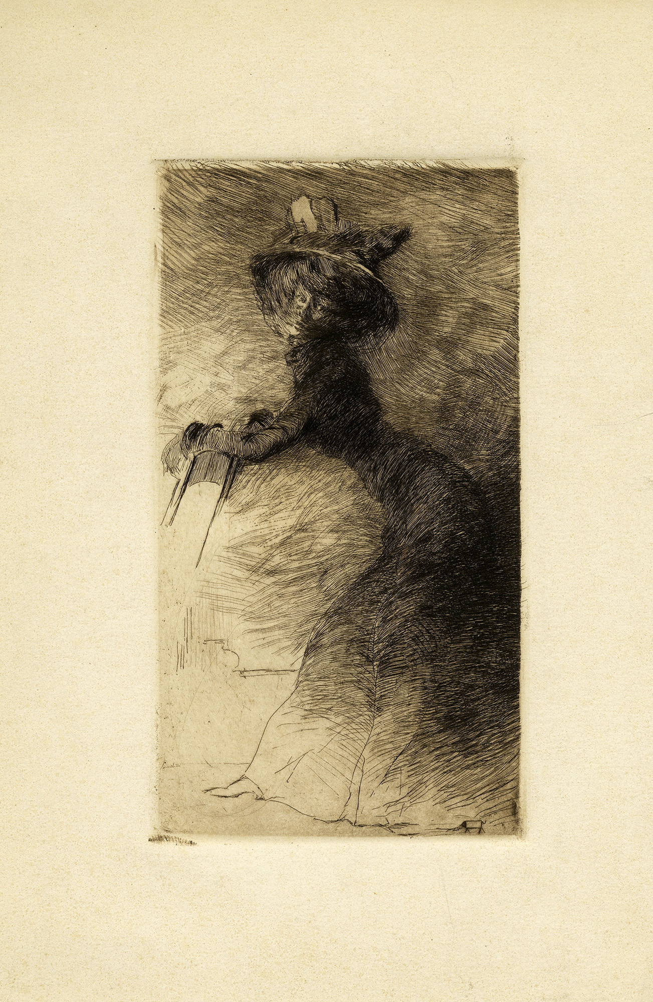 Lino Selvatico, Dama con cappello. Puntasecca. mm 175x95. Foglio: mm 275x185....