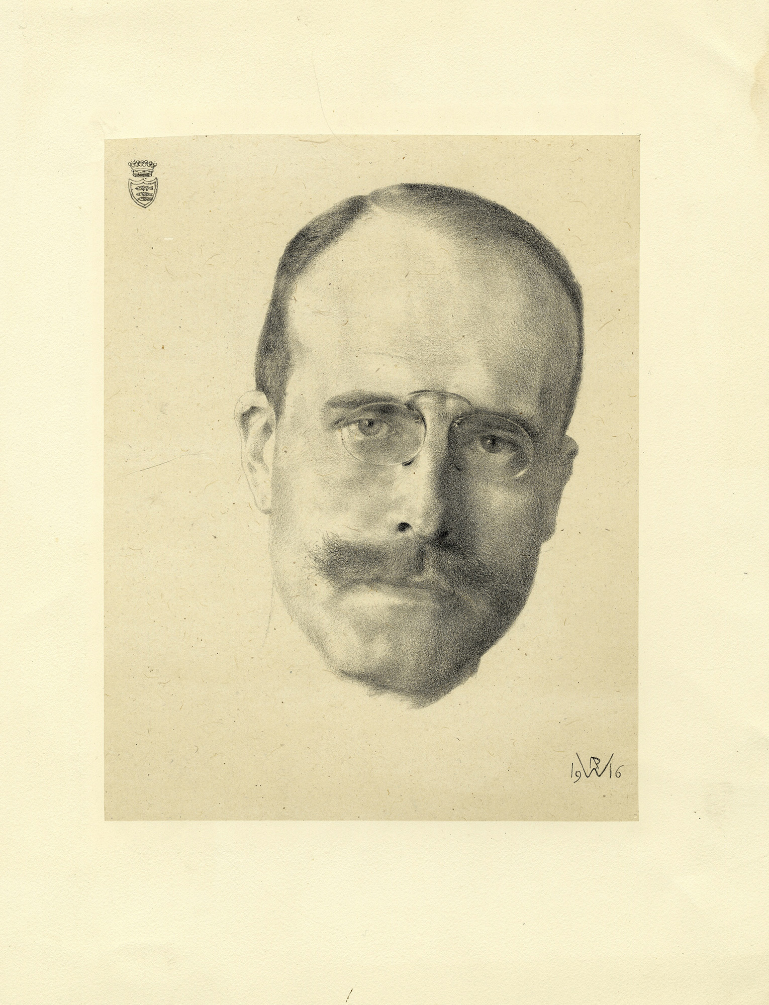 1) Ritratto maschile. 1916. Coppia della stessa incisione. mm 228x180 cad. Fogli: mm 365x280 cad. Monogramma e data in lastra in basso a destra. Stemma in lastra in alto a sinistra. 2) Ritratto femminile. 1916. Coppia della stessa incisione. mm 240x160 cad. Fogli: mm 365x278 cad. Monogramma e data in lastra in alto a destra, stemma in lastra in alto a sinistra. (4) Pieghe leggere. Buona conservazione generale.